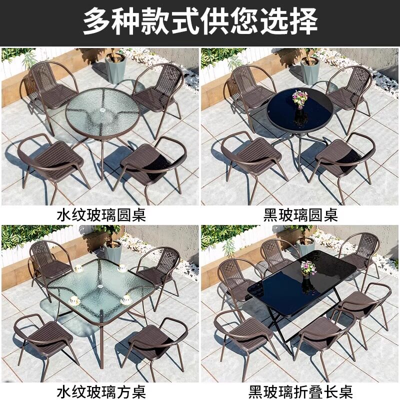 Уличные столы и стулья с зонтиками, стулья из ротанга, уличные стулья из углеродистой стали, отдых на открытом балконе, комбинация журнальных столиков, столы и стулья во дворе в саду