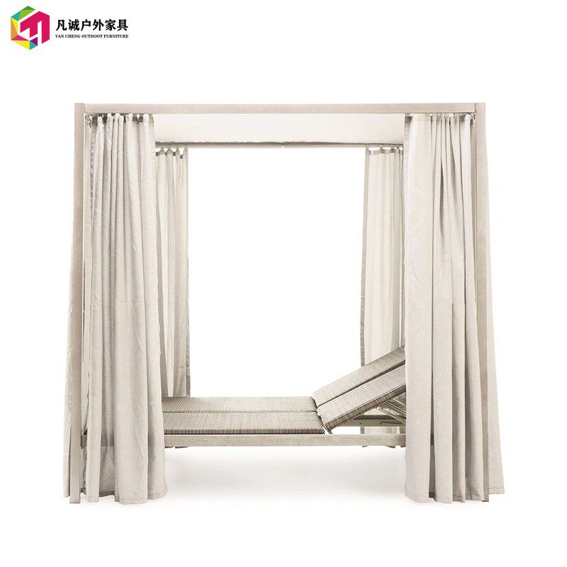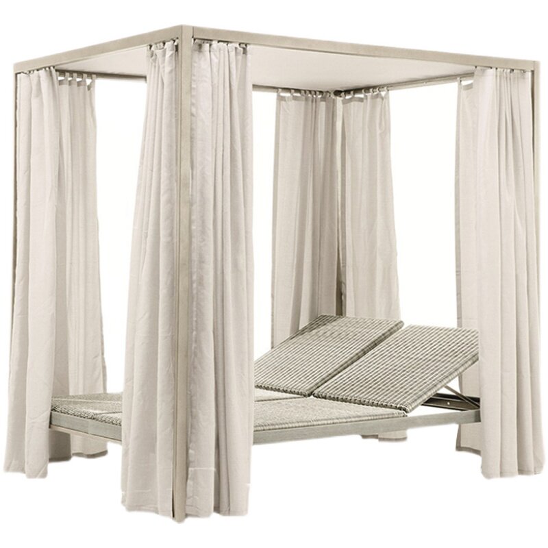 Открытый двор на открытом воздухе -повседневная двуспальная кровать, кресло, мебель, гостиничная, гостиница, нордическая терраса, ложа лежащая кровать
