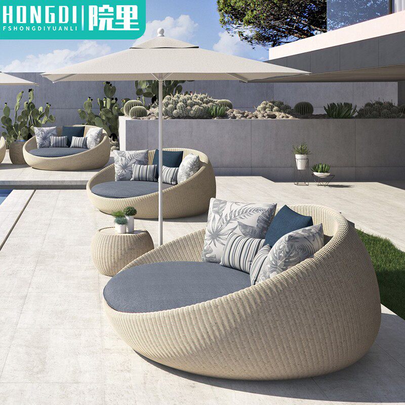 На открытом воздухе внутренняя кровать двор роттан, роттан, большая круглая кровать двойная птичья клетка вилла сад открытый творческий открытый диван -диван.