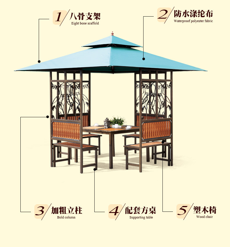 Открытый беседка сад сад сад вилла цветок, птичья беседка Tiansai Farmers Outdoor Iron Casual Sunshade Павильон