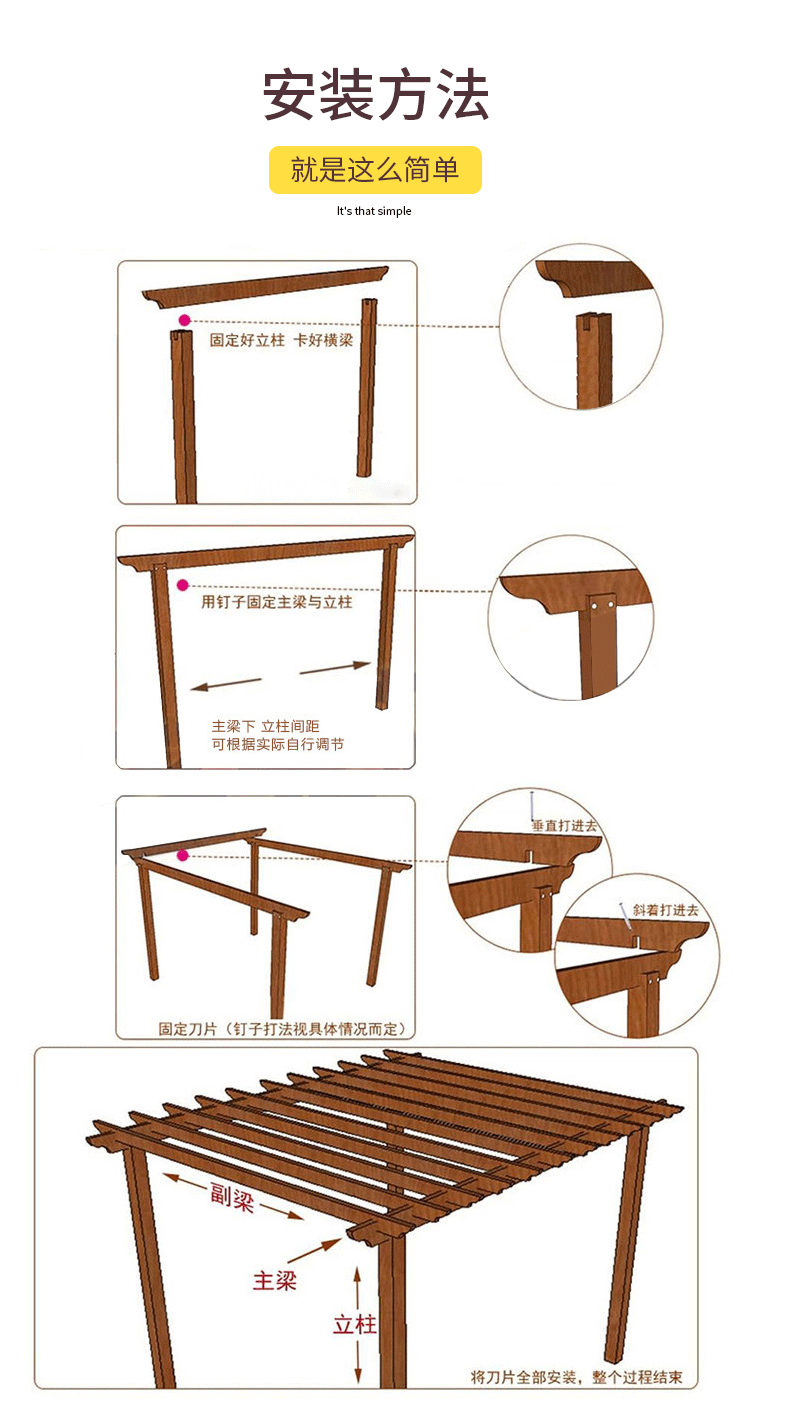 Открытый беседка на открытом воздухе Солнечный двор повседневное твердое дерево сад анти -коррозион