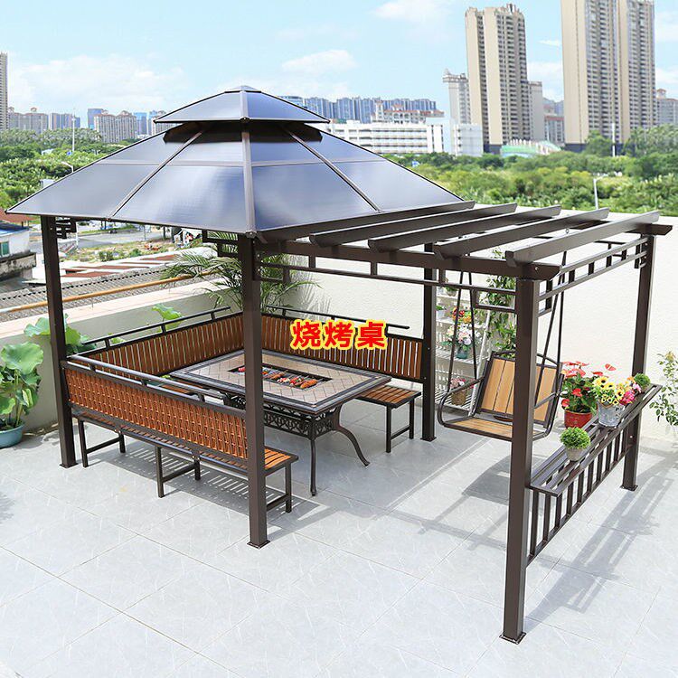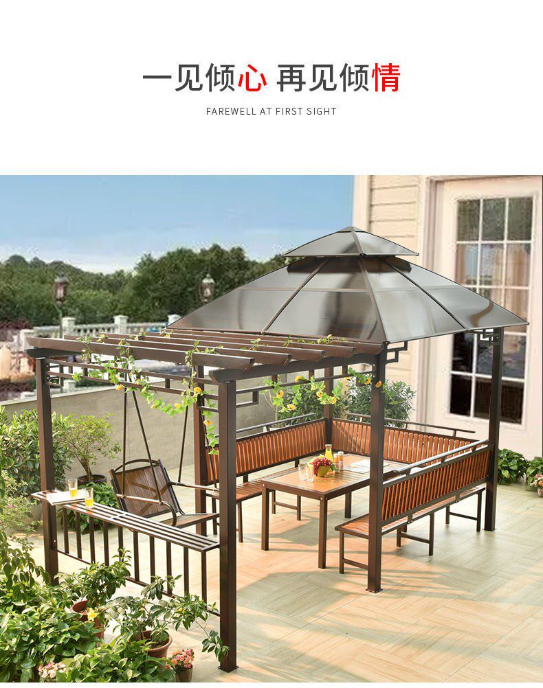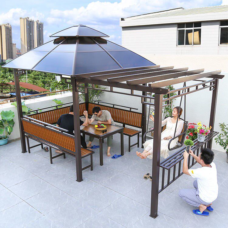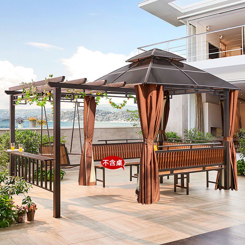 Уличная стойка для винограда с качелями, внутренний двор, антикоррозийный деревянный павильон, вилла, садовый тент, простой четырехугольный павильон, стол и стулья
