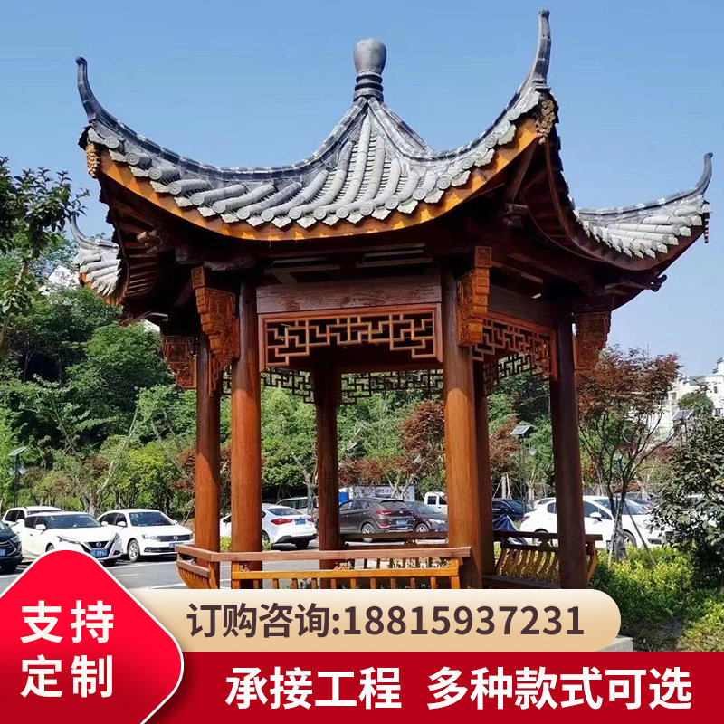 Сплошное дерево антикоррозивное деревянное древнее здание Четырех -корн Восьмиугольный ландшафтный ландшафтный ландшафтный ландшафтный ландшафт