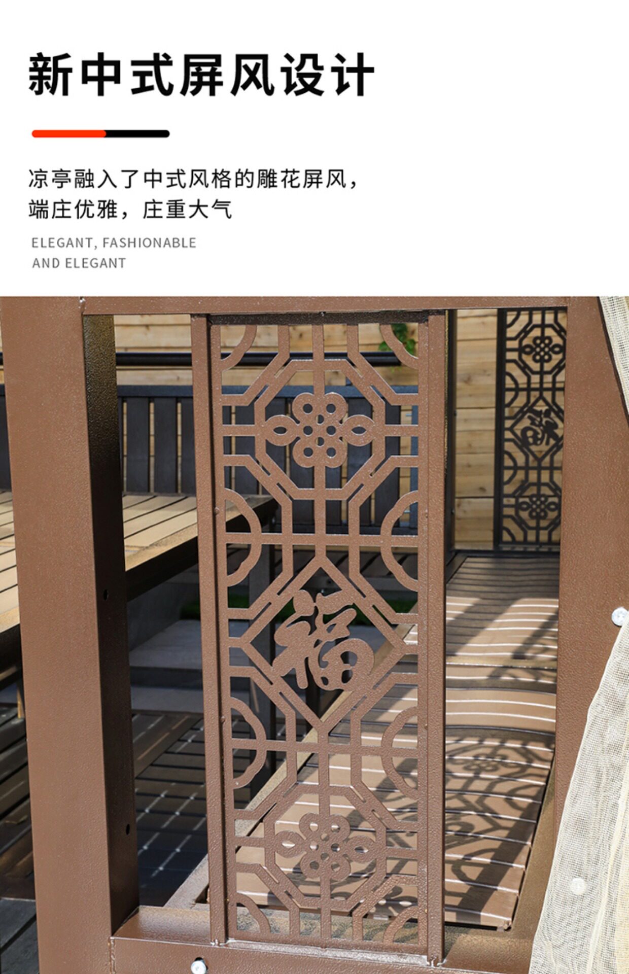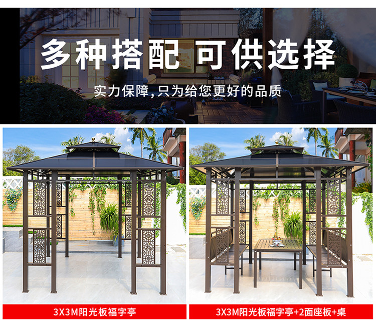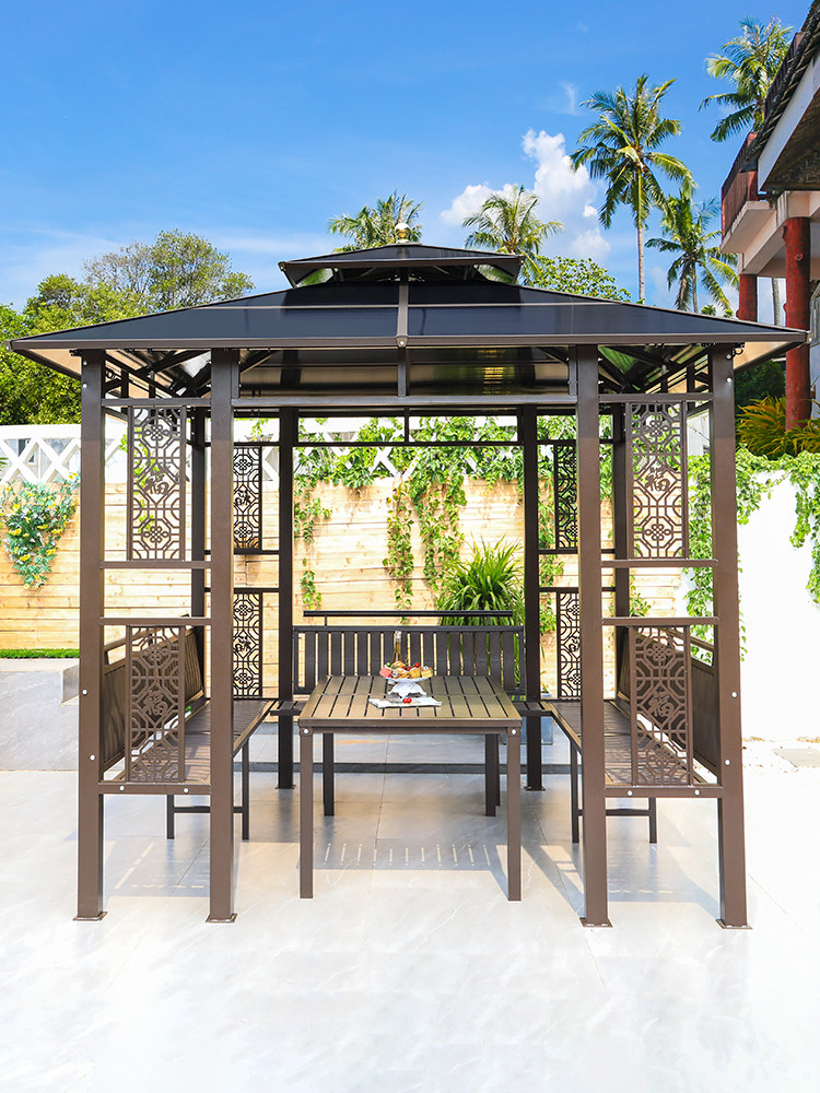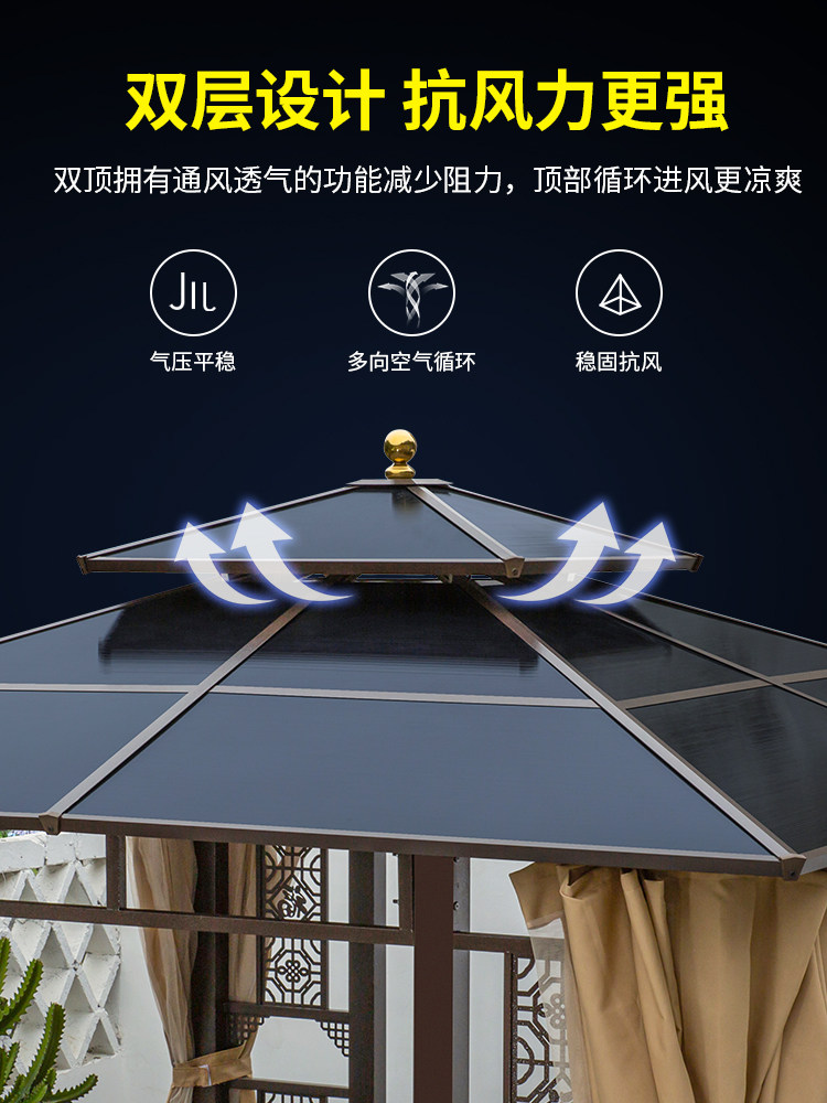Открытый беседка вилла двор садовой алюминиевый сплав Слитный сплав Топ -Фермеры отдых на открытом воздухе Новый китайский павильон