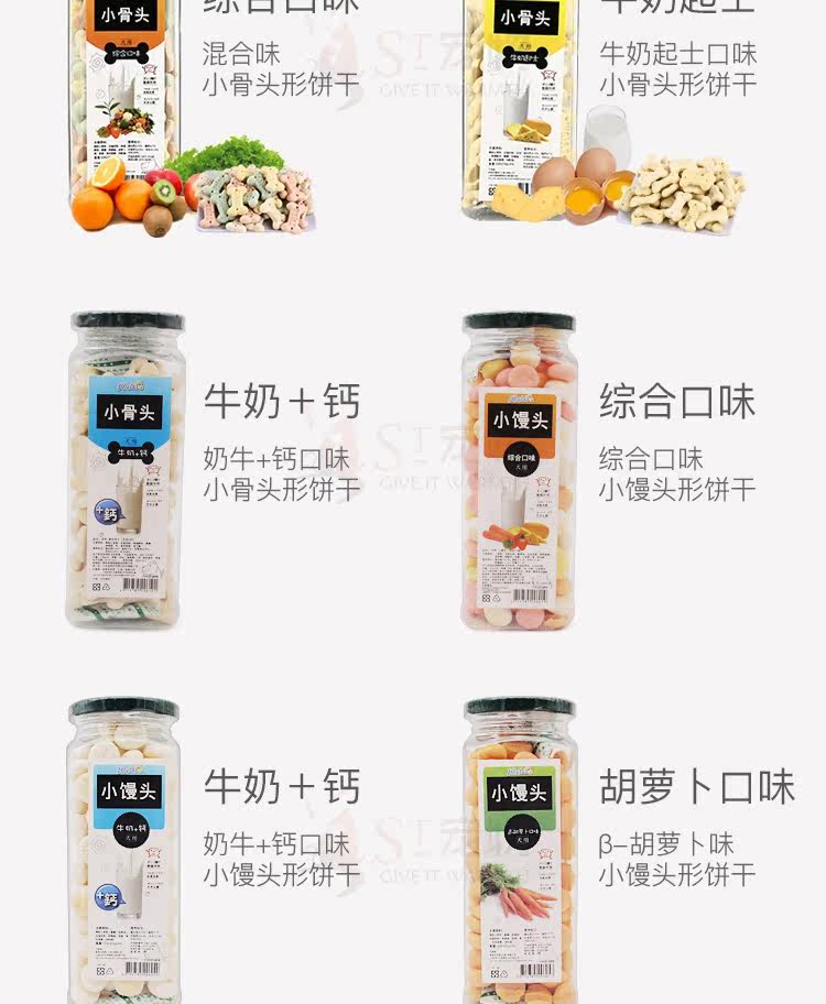 | Еда: | Маленькое молоко в форме кости 200G, Маленькая форма формы кости Комплексный вкус 200G, Комплексные ароматизированные маленькие булочки на пару 165 г, Молоковое печенье 270 г |