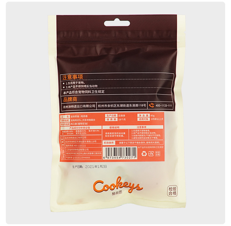 | Еда: | Куриный рулон 80G, Утиное мясо рулон 80G |