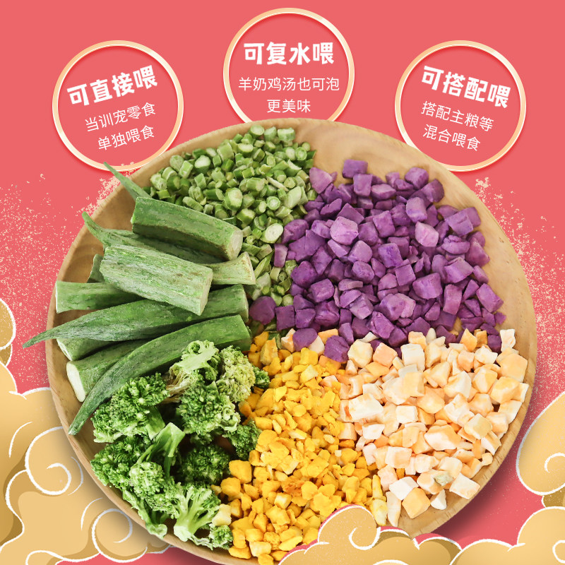 | Еда: | Фиолетовый картофельный зерно 90 г, Apple Film 45G, Банановый фильм 70G, Брокколи 25G, В общей сложности 20 г бамии 20 г, Клубника, 25G, Морковное зерно 35 г, Тыквенное зерно 40 г, Fire Dragon 80G |