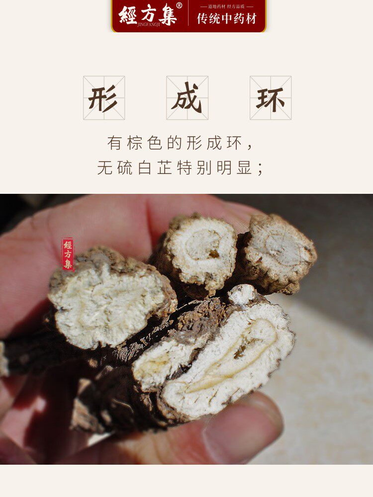 Этот продукт является сухим корнем из зонтичного растения байджи или hangbaiji.Копайте летом и осенними листьями, удалите корни и осадок, высушите его или высушите при низкой температуре. [Свойства] Этот продукт имеет длинный, длинный, от L0 до 25 см и диаметром 1,5 ~ 2,5 см.Поверхность серая или желто -коричневая, корневая головка тупая четырехугольная или почти -циркулярная, с вертикальными морщинами, браслетами и кожаными горизонтальными выступами, а некоторые расположены в четыре вертикальные линии.На вершине есть подавленная марка STEM.Качество твердое, раздел белый или серо -белый, а порошок имеет многослойный коричневый коричневый, почти квадратный или почти круглый, а большинство коричневых маслевых точек разбросаны в коже.Ци и ароматный, вкусный печальный, слегка горький. | |||