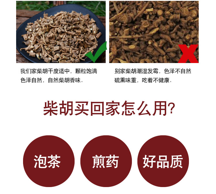 Характеристики лекарственных материалов: BEI Chaihu: совет цилиндрического или длинного конуса, длиной от 6 до 15 см, диаметром 0,3 ~ 0,8 см.Корневая головка увеличена, и от 3 до 15 оснований ствола или групп листьев с коротким волокном остаются сверху, а некоторые ветви остаются.Поверхность темно -коричневая или светло -коричневая, с продольными морщинами, поддержкой корней и кожаными отверстиями.Твердый и жесткий, нелегкий в сломании, секция волокнистая, кожа светло -коричневая, а дерево желтая и белая.Ци слегка ароматный, а вкус слегка горький. Нэн Чайху: Корни тонкие, конус и большинство волоконного волокна наверху.Поверхность красная или черная коричневая, с тонкими кольцами у корневой головки.Качество слегка мягкое, легко сломаться, секция слегка плоская, и он не волокнистый.С потерей нефти и газа.