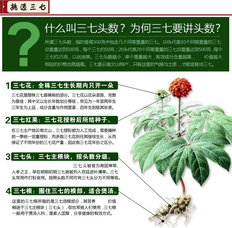 Подлинные три семь голов Юннана Веншана Санки 40 голов, три семи специальных, семь 50 граммов могут сыграть три -семь порошок бесплатно