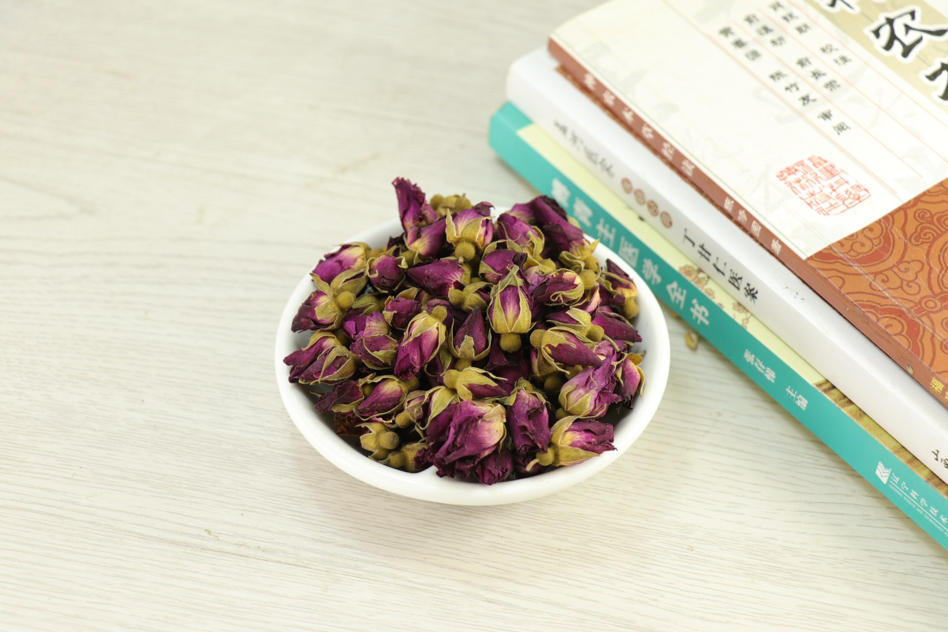 Этот продукт представляет собой сухой цветочный бутон из Розы Ругоса Тунб.В конце весны и в начале лета цветы будут выбирать партиями при низких температурах во времени. 【Характер】  Этот продукт слегка полусферический или нерегулярно, диаметр 0,7 ~ 1,5 см.Остатовые цветочные стебли -это волосы с виллами, цветок, держащий полусферический, и основание чашечки; чашелистики 5, ланцетные, желтые или коричневые зеленые, с тонким заливным; плитки расположены, пурпурно -красные, некоторые из которых желтые -Броустя;Легкое тело.Жизнеспособность сильна, а вкус немного горький. | |||