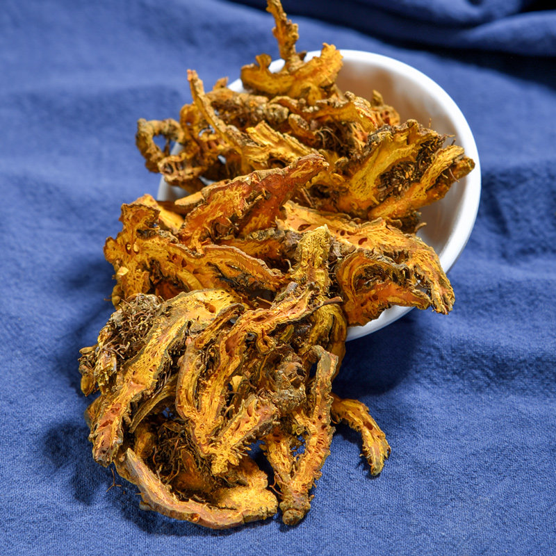 Эффекты и дикие эффекты подлинных китайских лекарственных материалов Coptis chinensis, пропитанные водой и пьют чайный порошок с бешено