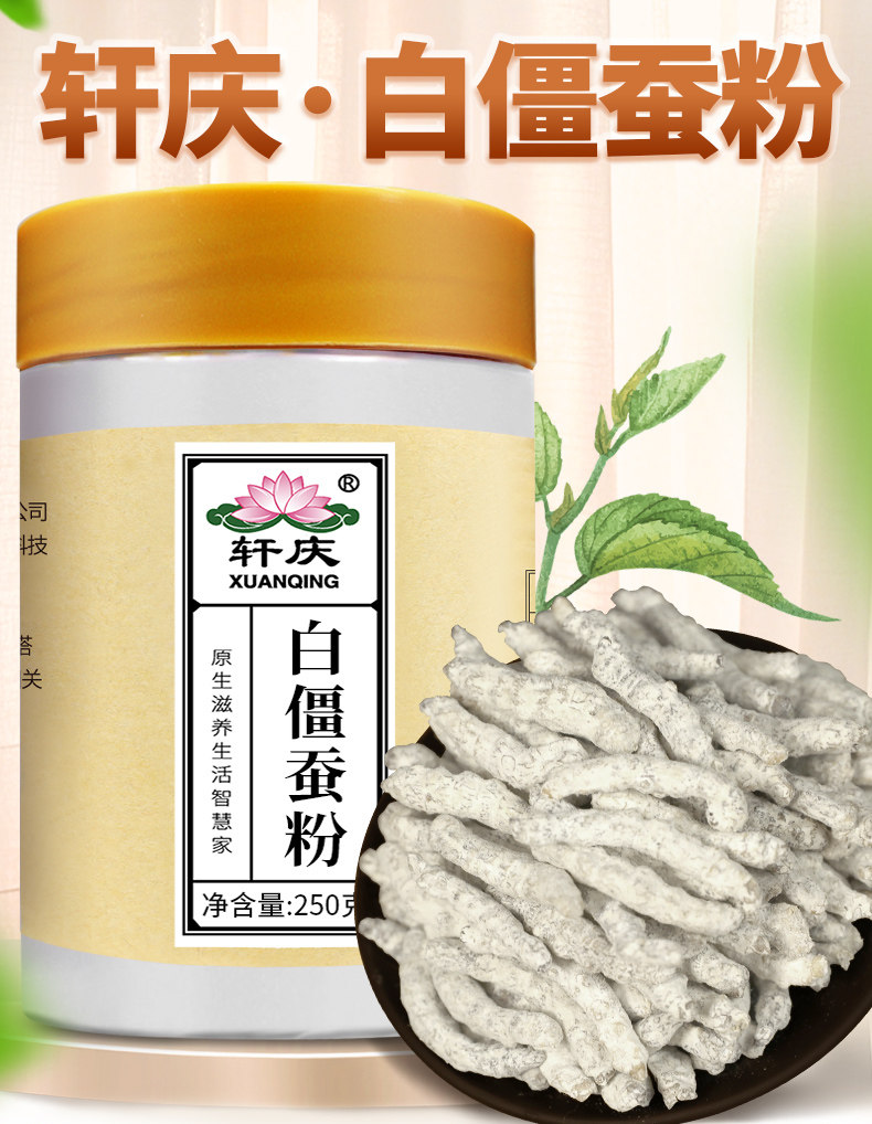 轩庆 Белый зомби порошок 500 г белый зомби шелкорный червя Qinsheng Белый имбирь шелковидный шелкопный изделия нефритовый шелкорный шелкорный шелковик.