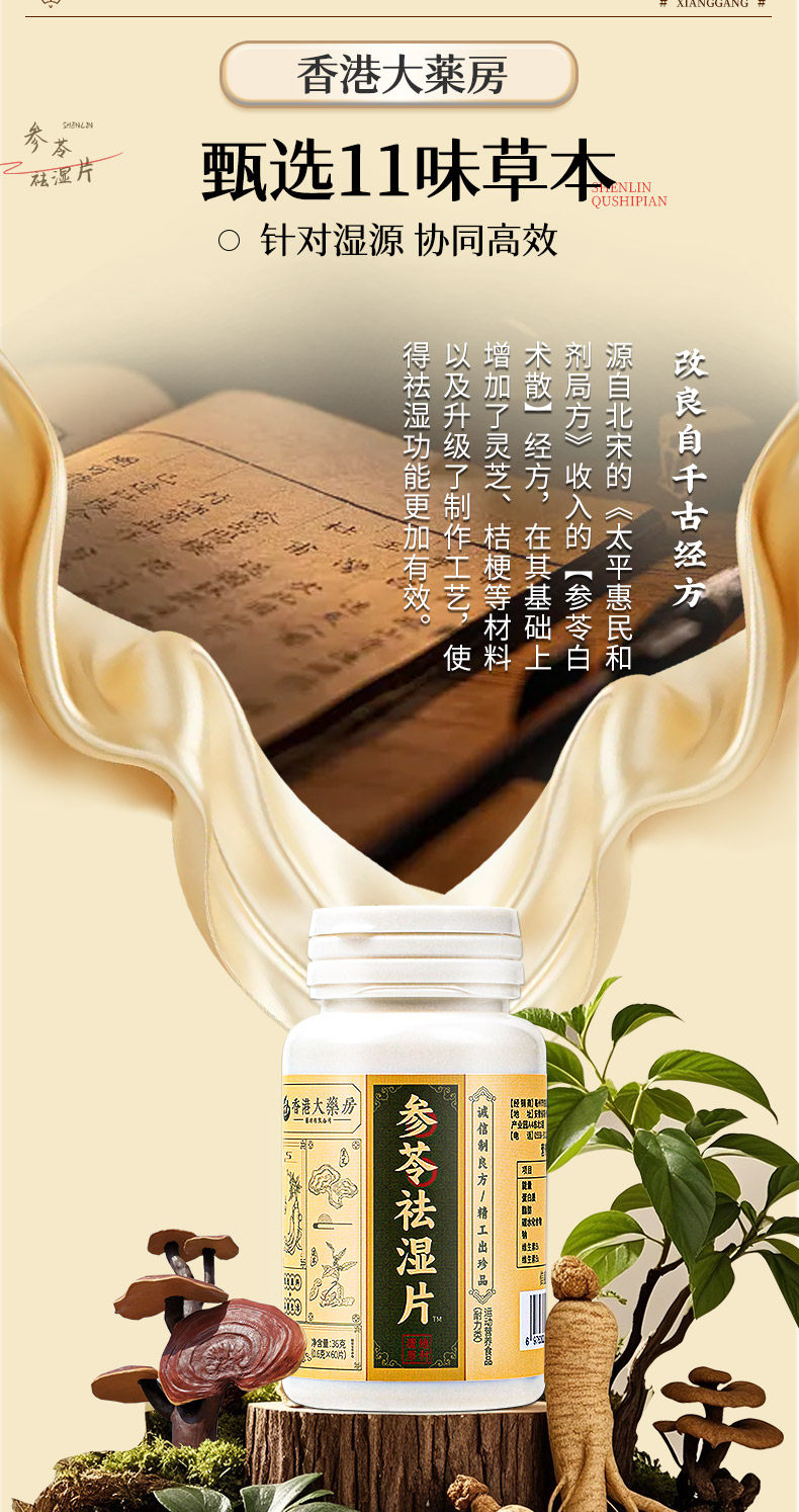 Гонконгские таблетки Sanfutian Qushishi без влаги и легкие таблетки ячменя регулируют работу селезенки и желудка, устраняя сырость и холодные токсины. Официальный аутентичный продукт.