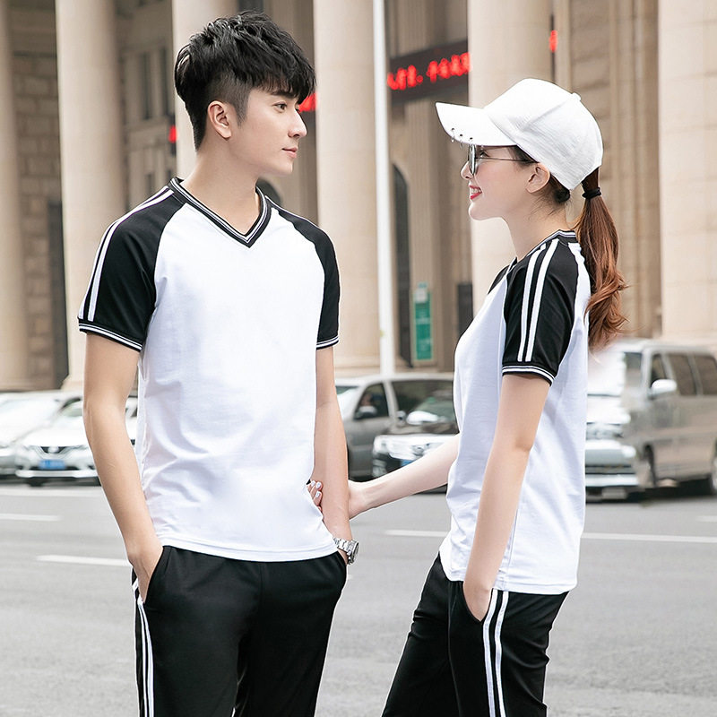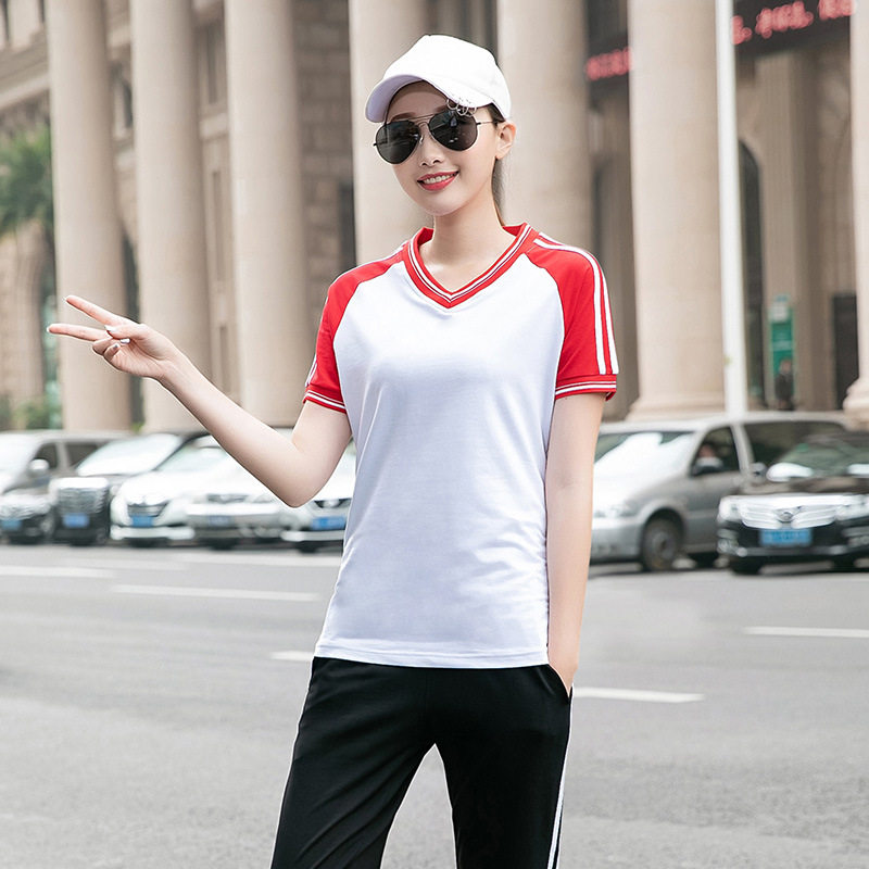 Летняя форма для школьников, хлопковый дышащий спортивный костюм, 2019, V-образный вырез, короткий рукав, подходит для студента