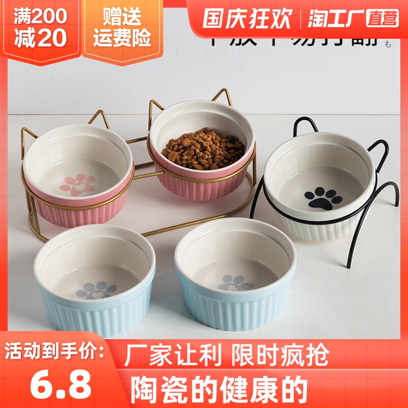 Керамическая двойная миска с кошачьей кучкой для собачьей корм для собак рис кошка кормление питьевой водой для защиты домашних животных среднего размера шейки матки