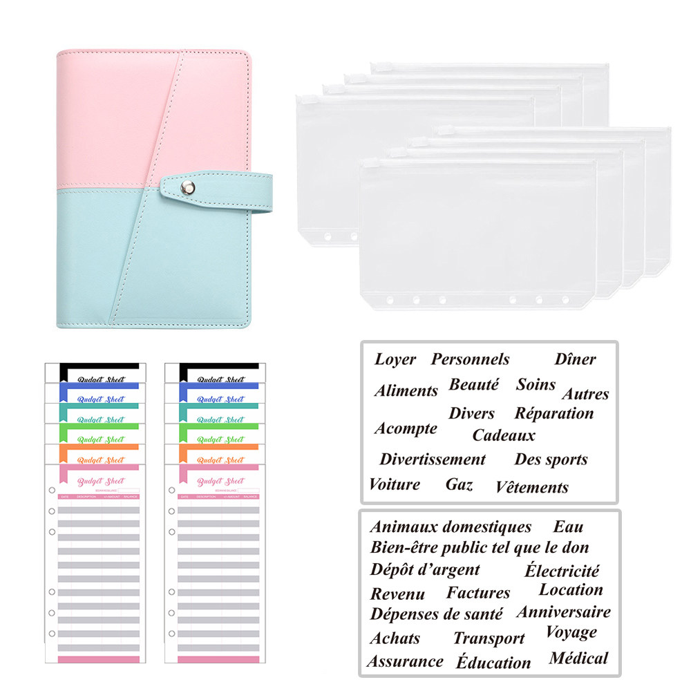 Бюджетный конверт из ПВХ, органайзер для денег, A6, планировщик для тетрадей, 2 шт., наклейки с французским алфавитом, 8 шт., карман на молнии, дропшиппингUSD 3.82-10.79/piece