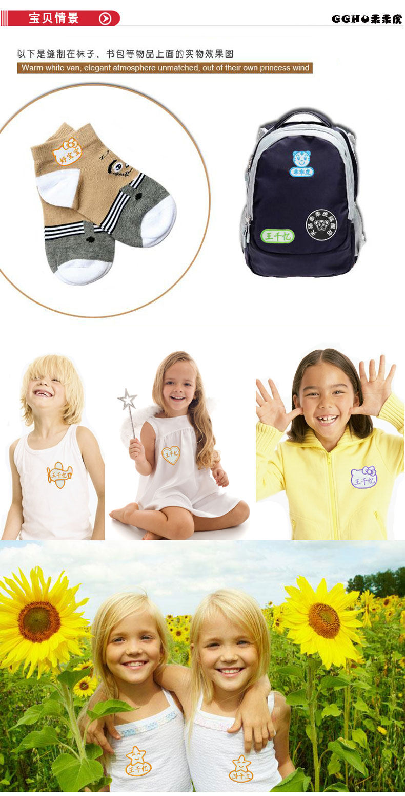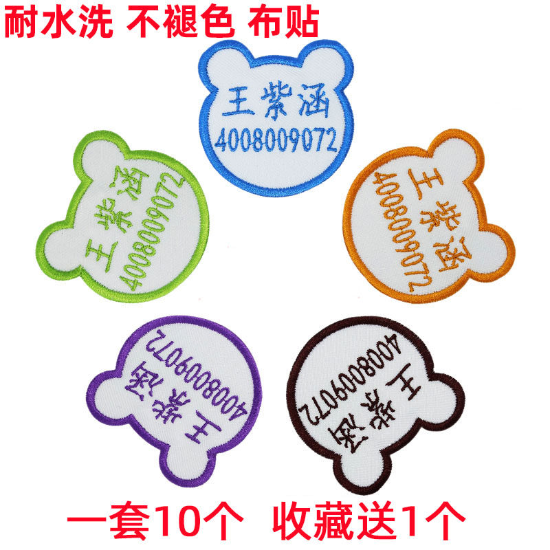 Детская именная наклейка для детского сада, пластырь, телефон, с вышивкой