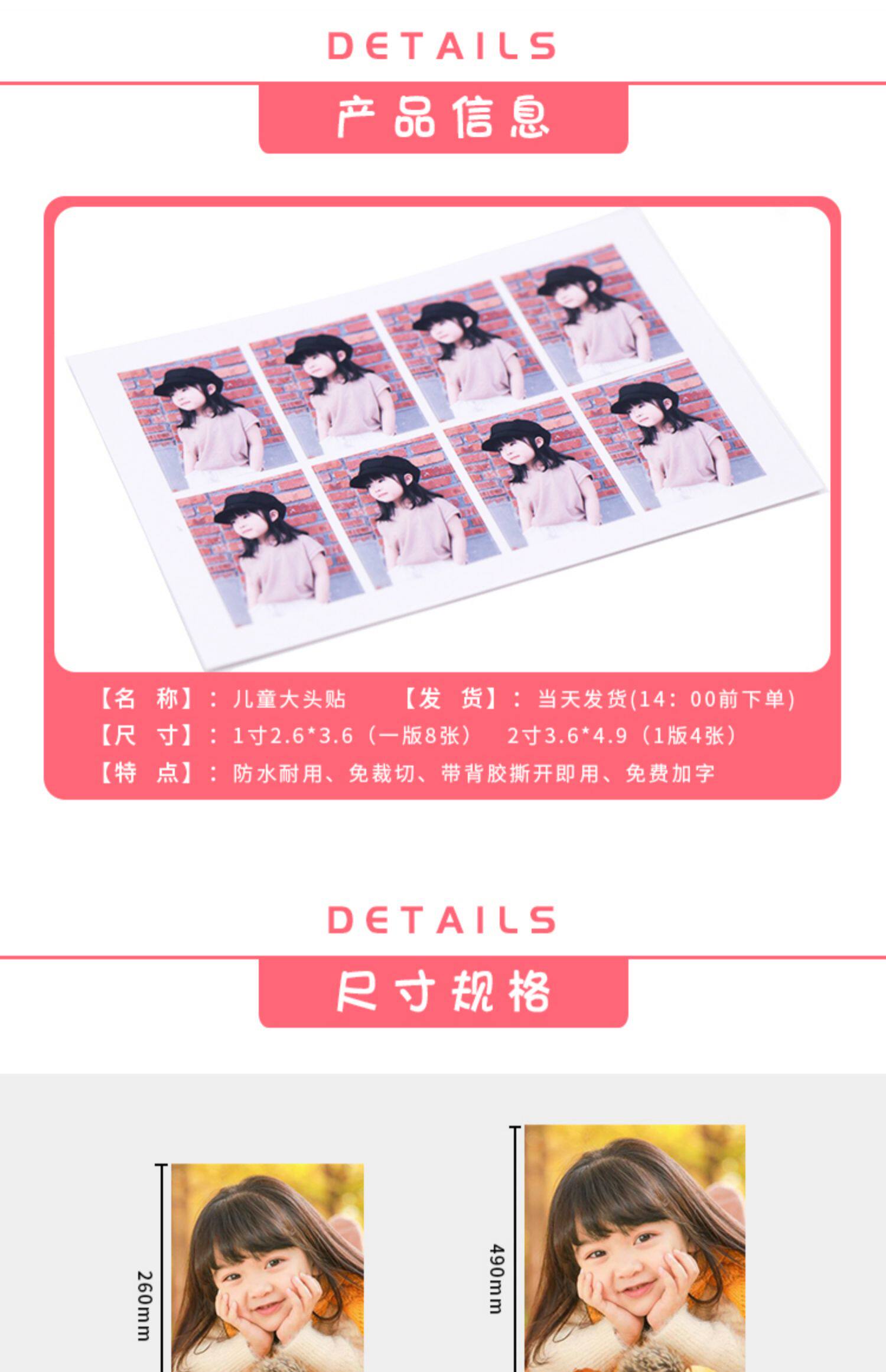 Водонепроницаемая клейкая наклейка для детского сада, детская фотография для школьников, делается под заказ, 1 дюймов