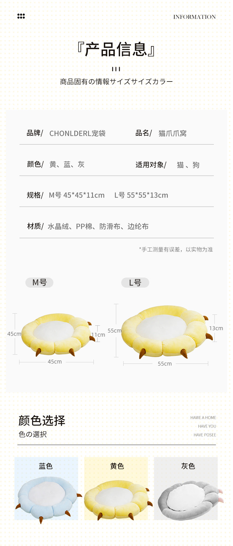 | Применимый размер: | M [размер: 45*45 см подходит для домашних животных за 10 фунтов], L [размер: 55*55 см подходит для домашних животных за 20 фунтов] |
