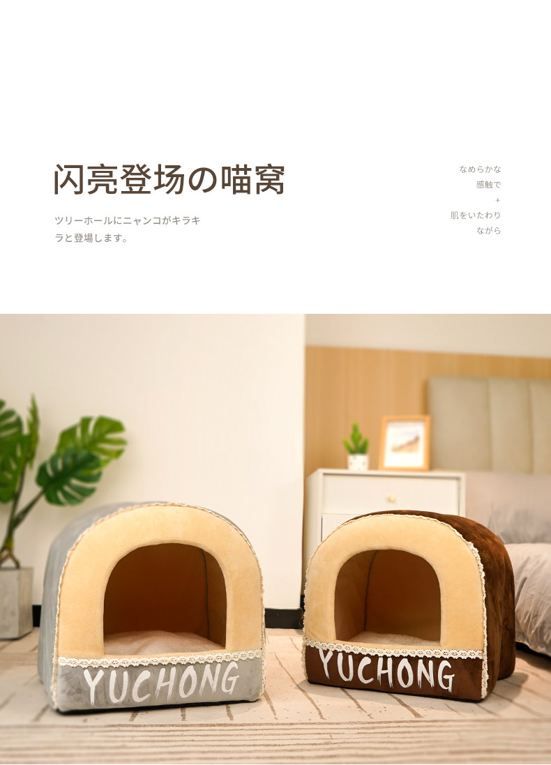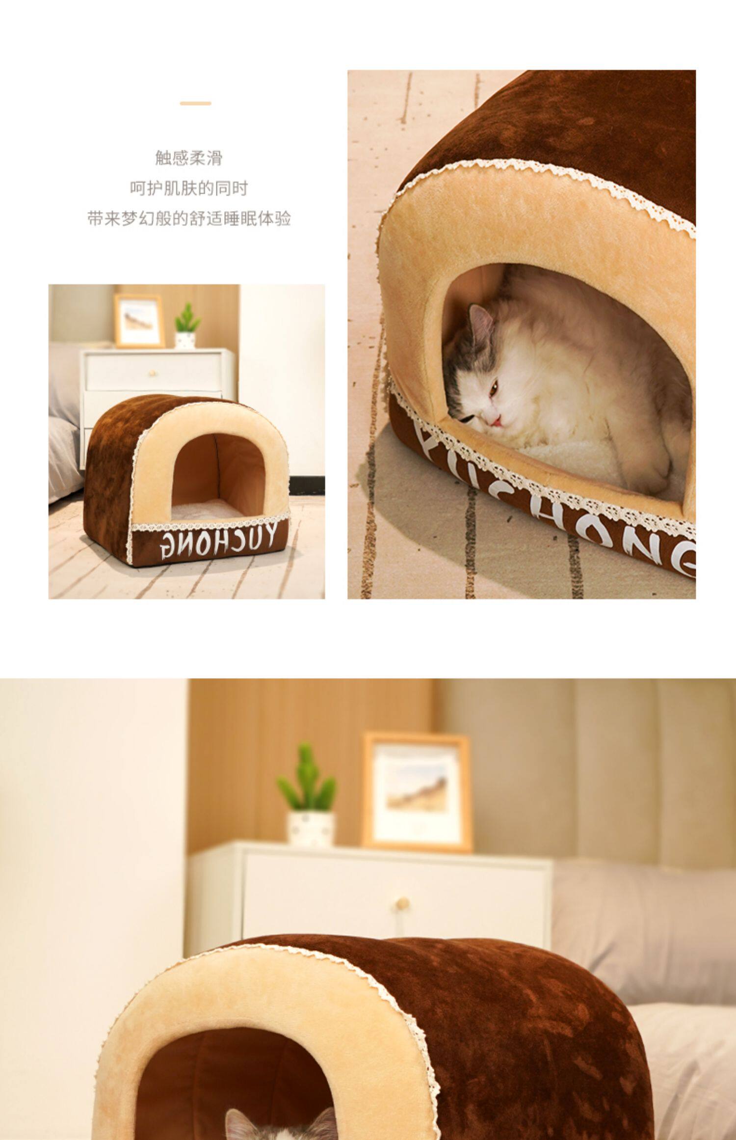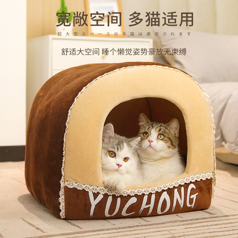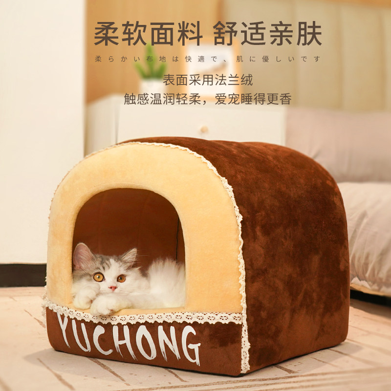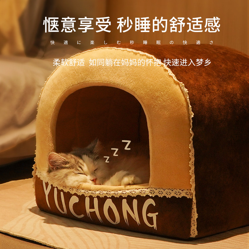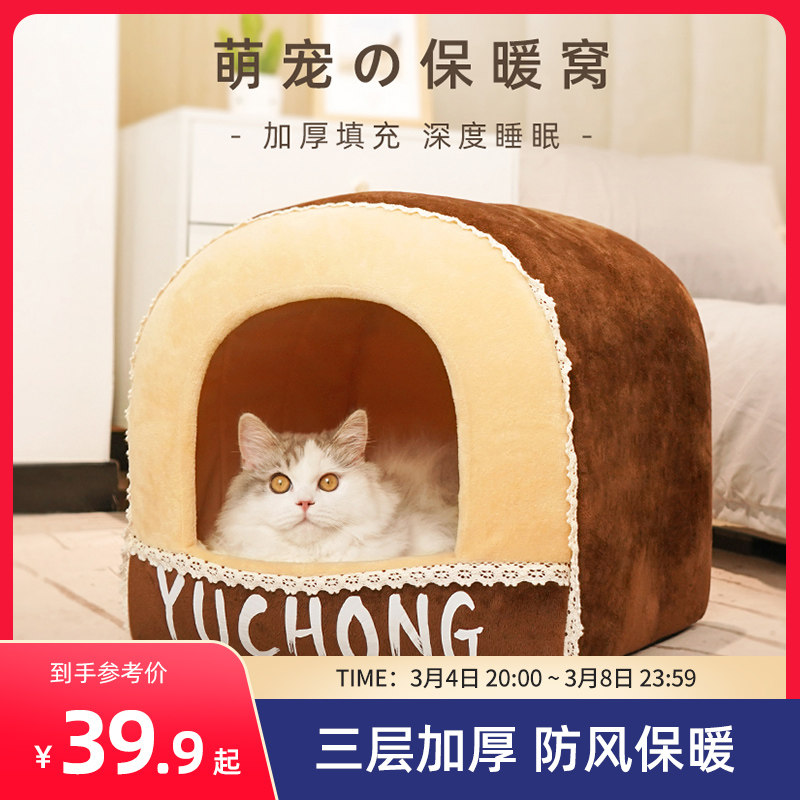 [猫窝冬季保暖半封闭式狗窝小型犬四季通用宠物床屋可拆洗猫咪用品]