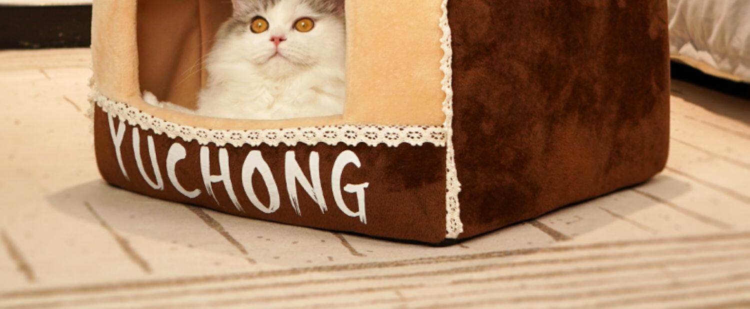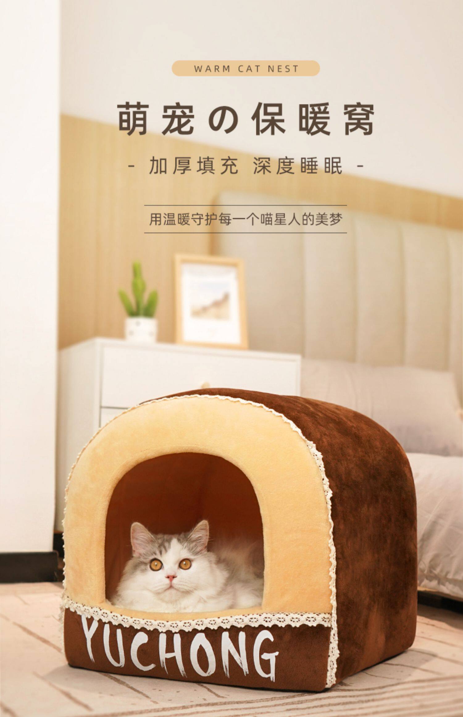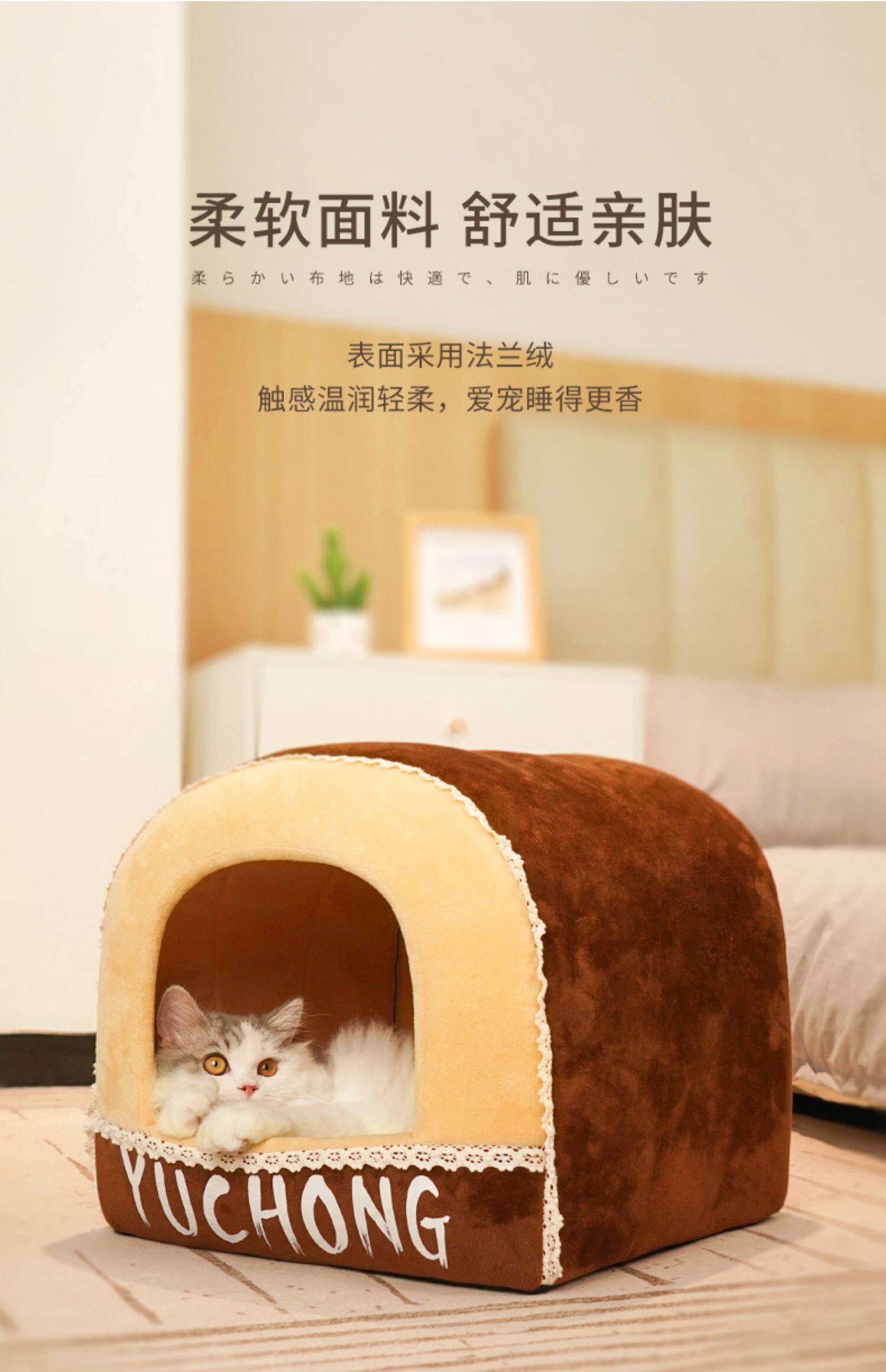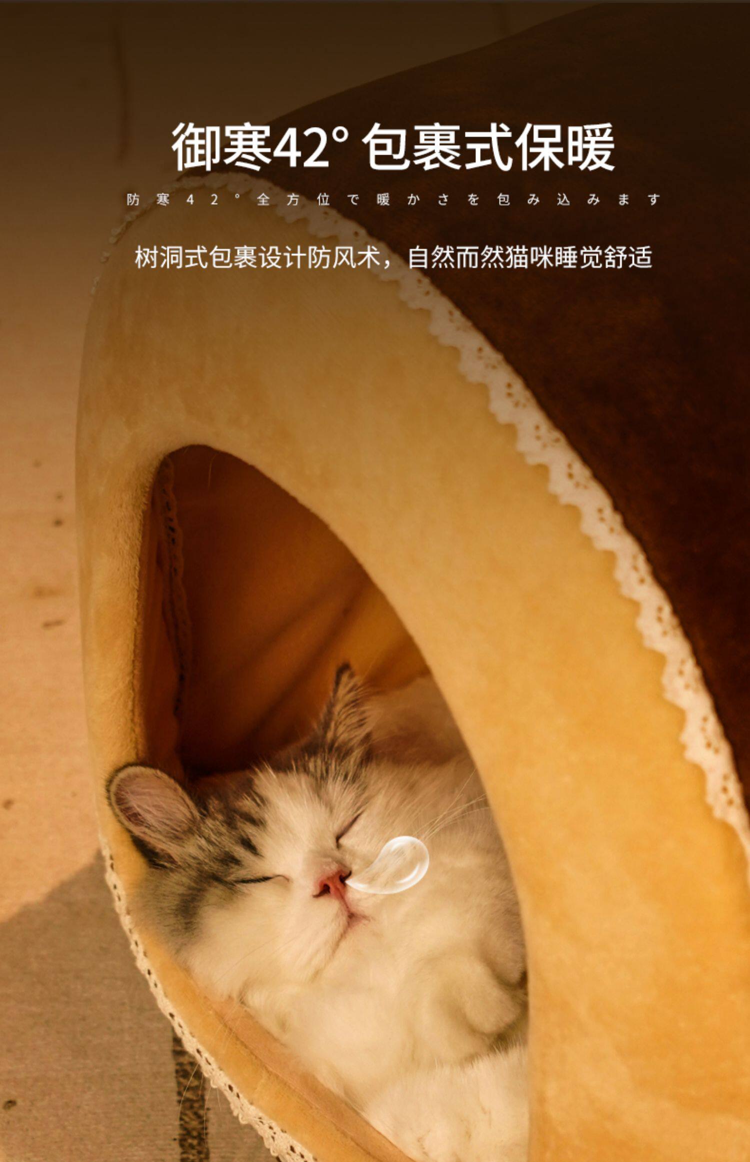 [猫窝冬季保暖半封闭式狗窝小型犬四季通用宠物床屋可拆洗猫咪用品]