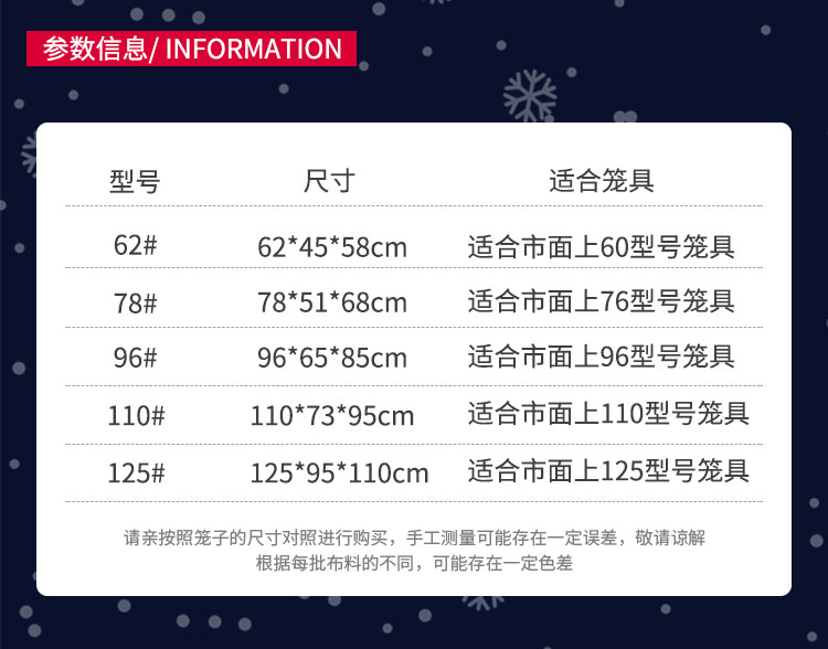 | Цвет: | Подходит для 52*37*43, окутанных (исключая клетку), Подходит для 60*43*50, окутанных (исключая клетки), Подходит для 70*50*60, окутанных (исключая клетку), Подходит для 85*60*70, окутанных (исключая клетку), Подходит для 100*60*70, окутанных (исключая клетку), Подходит для 130*60*70, окутанных (исключая клетку), Подходит для 62*45*58, окутанных (исключая клетку), Подходит для 78*55*72, окутанных (без клетки), Подходит для 95*65*85, окутанных (исключая клетку), Подходит для 110*73*95, окутанных (исключая клетку), 125*80*96, окутанные (исключая клетку), Подходит для 125*95*115, окутанной (исключая клетку), Подходит для 150*95*115, окутанных (исключая клетку), Подходит для 186*95*115, окутанной (исключая клетку) |