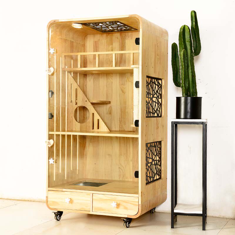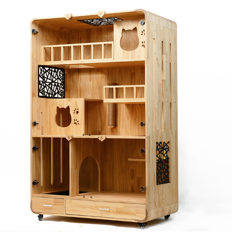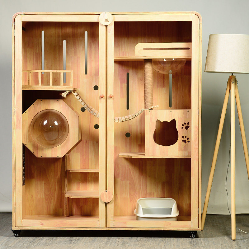 Кошачья вилла с твердым деревом кошачьей шкаф дома закрыто двух -слоя кошачьи клетки с двойным слоем минимализированные ловцы на заказ свободного пространства