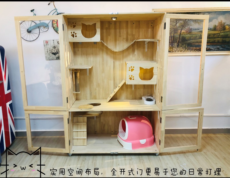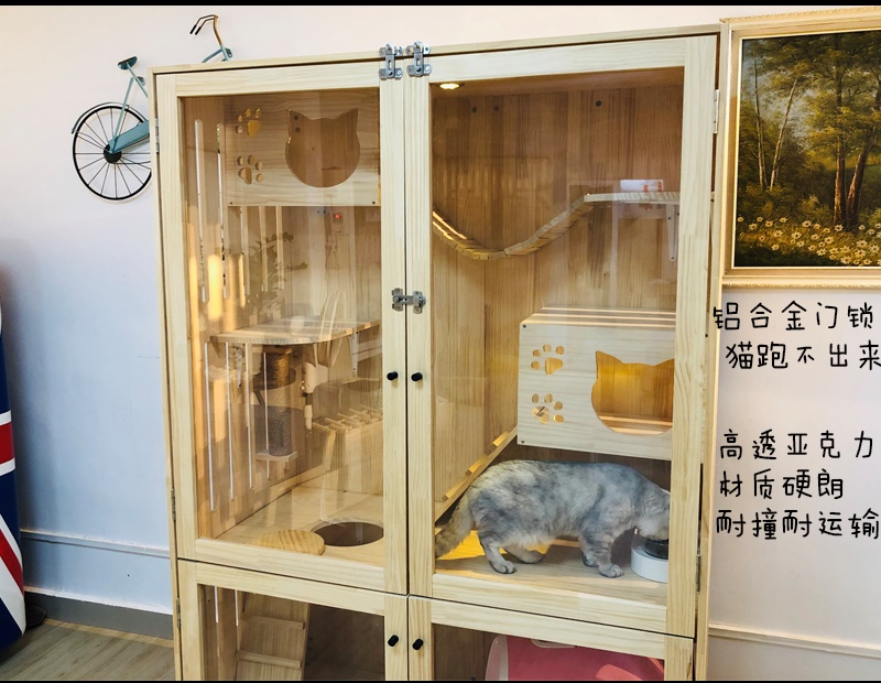 Деревянная автоматическая вилла из натурального дерева, кот, полностью автоматический