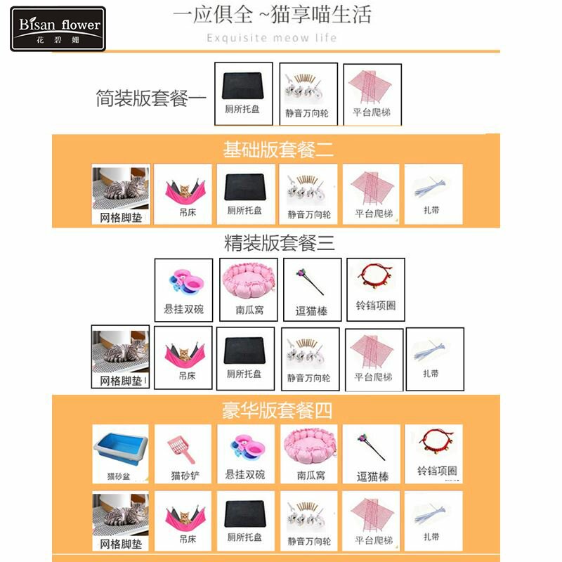 | Применимый размер: | Пакет 2 [Grid Foot Pad+Hammock+ремень+набор 1], Пакет три [тыквенное гнездо+веселая кошка и 10 штук], Пакет 4 [Кошка Saspot+кошачья лопата кожи и другие 12 штук], Пакет 1 [платформа+лестница+колесо+поднос] |