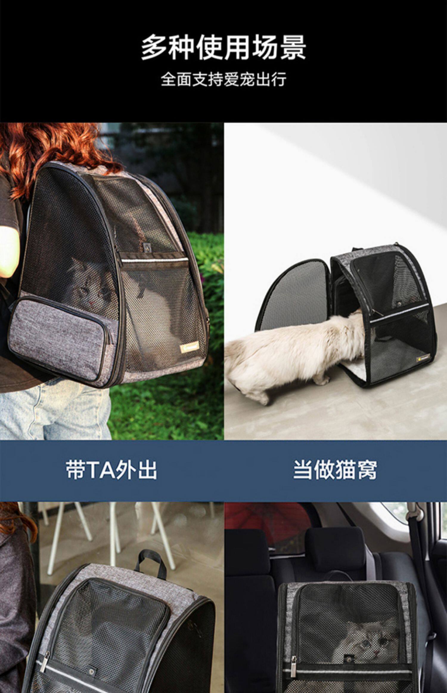Вместительный и большой портативный школьный рюкзак для выхода на улицу, дышащая подушка безопасности, домашний питомец, кот
