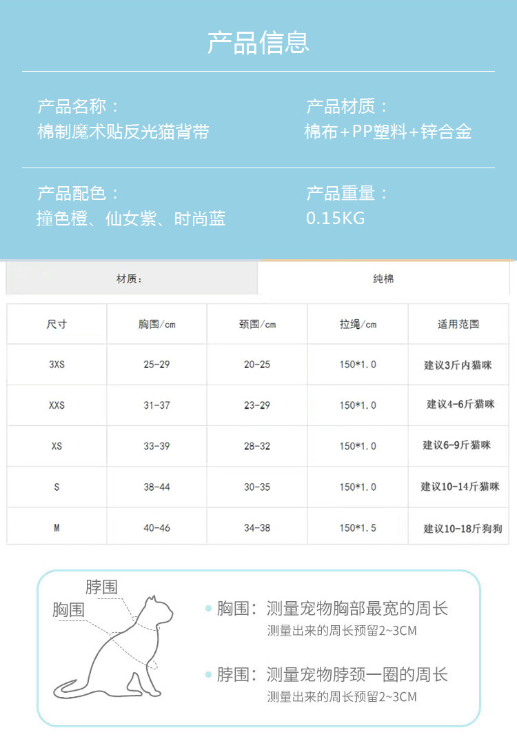 | Применимый размер: | 3xs (в течение 3 фунтов) рекомендуется разместить заказ после измерения, 2xs (3-6 кот) рекомендуется измерить после измерения, XS (6-8 кот) рекомендуется измерить после измерения, S (8-12 кот) рекомендуется разместить заказ после измерения, M (12-15 кот) рекомендуется разместить заказ после измерения |
