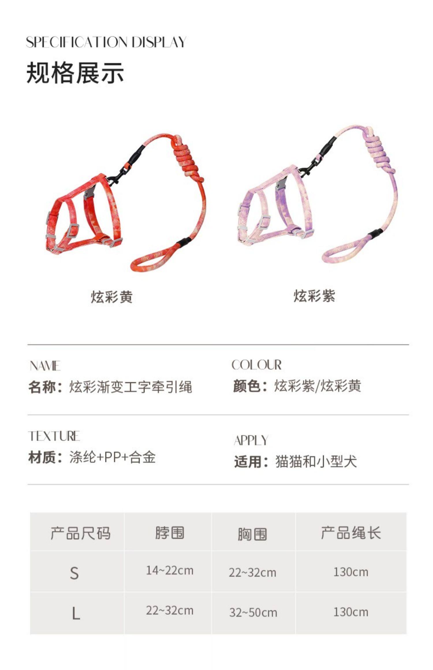Применимый размер: S код [5 фунтов 丨 1,3 метра ведущего размера веревки регулируется], L код [5-20 кот 丨 1,3 метра ведущего размера веревки регулируемые]]