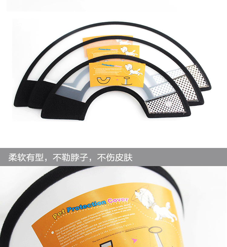 *[Функции】 ::: Мягкий полупрозрачный пластиковый лист, внутренний и внешний круг имеет защитную стержень черных короткиЗащитная крышка для домашних животных использует мягкий импортный пластик, который является безопасным, твердым и новым.Посылки используются для нанесения вреда телу домашнего животного.Интерфейс использует мужские и женские палочки, которые удобно использовать и могут отрегулировать длину шеи.