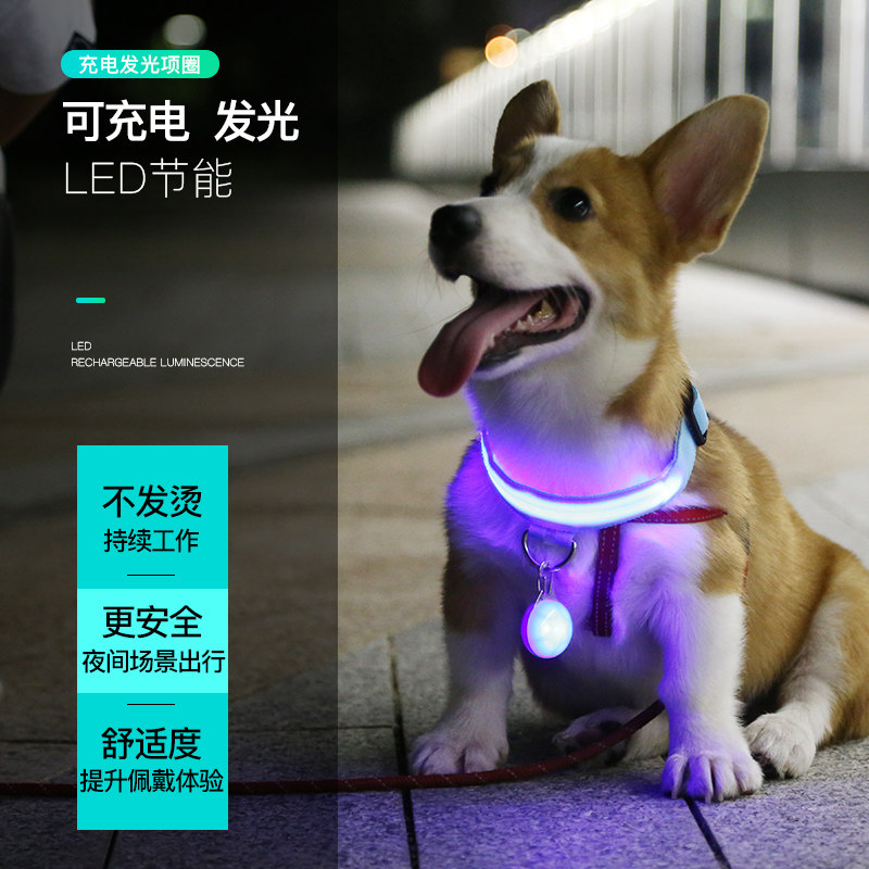 Собачья лампа -лампа для ремня кольцо USB зарядное кольцо кольцо кольцо кольцо плюшка золотые волосы маленькие, средние большие собачьи ходьба артефакт собаки