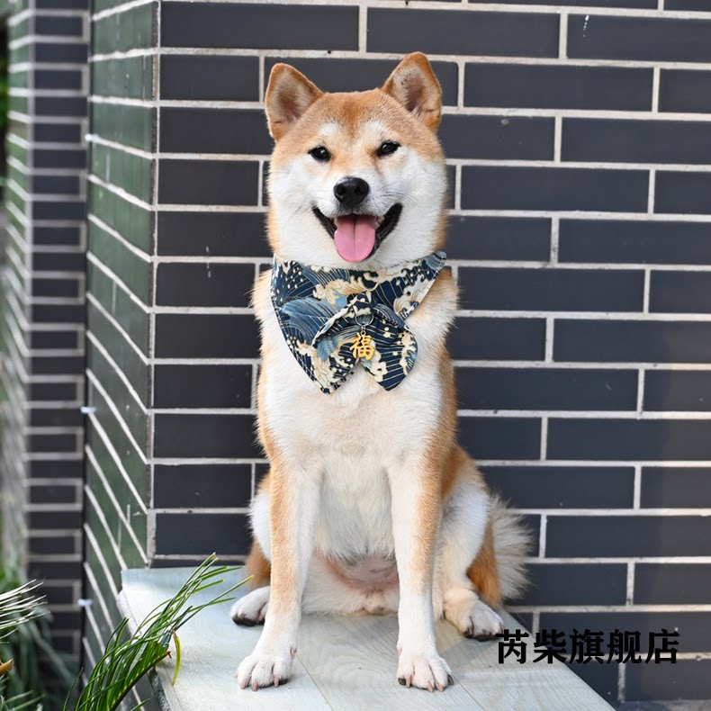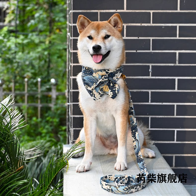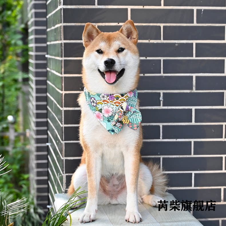 芮柴 Шаровая ошейник для любимой собаки и стиль трава трава лук -треугольник шарф Шарф Тедди Шиба Ину воротнич