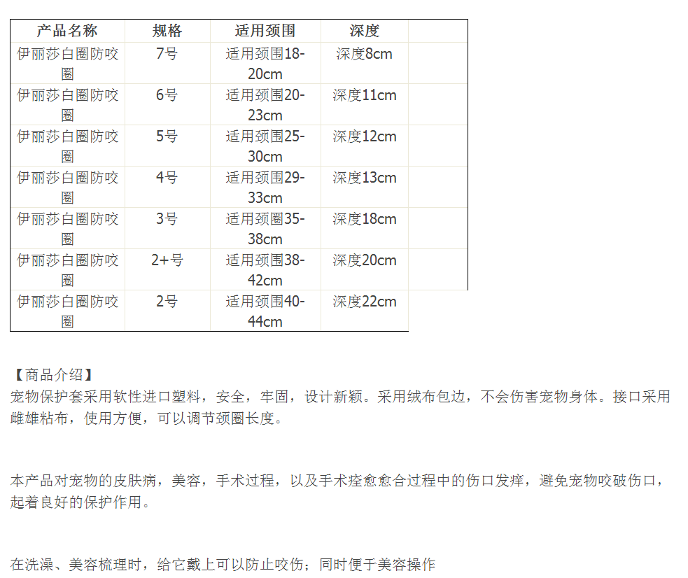 Этот продукт оказывает хорошее защитное воздействие на заболевания кожи домашних животных, красоту, хирургию и раны во время хирургического заживления, и избегают домашних животных кусать рану, которая играет хорошую защитную роль.