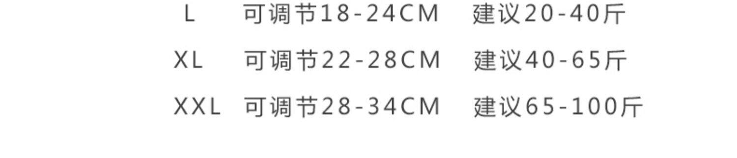 | Применимый размер: | S-рецензируемый 12-15 см., M-поместимый 14-20см-Suggestion 10-18 Catties, L-Регулируемая 18-24 см. Собечник 20-40 Catties, Установленные XL 22-28 см. 40-65 Catties, Xxl-регулируемая 28-34 см. США. 65-100 Catties |
