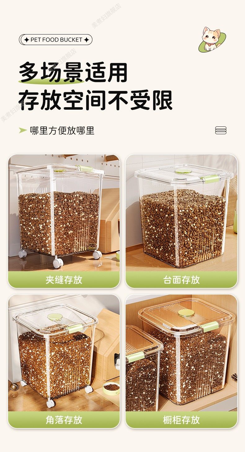 Ведро для хранения кошачьей еды, герметичное ведро для корма для собак, бытовая влагостойкая коробка для корма для домашних животных, ведро для хранения зерна большой емкости, ящик для хранения