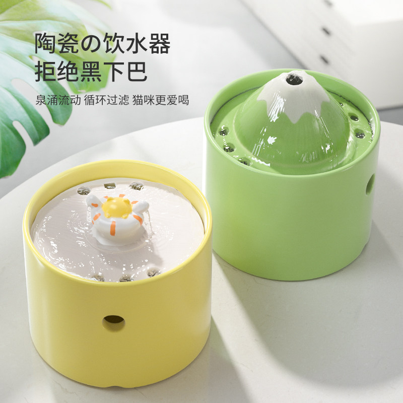 Кошка напитки собака пьет кошачья керамика по потоку питьевой воды без влажного рта.
