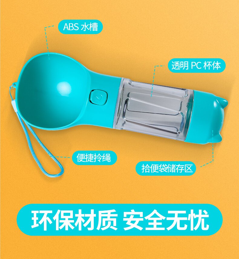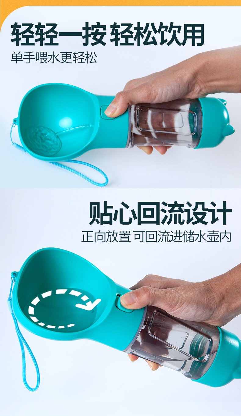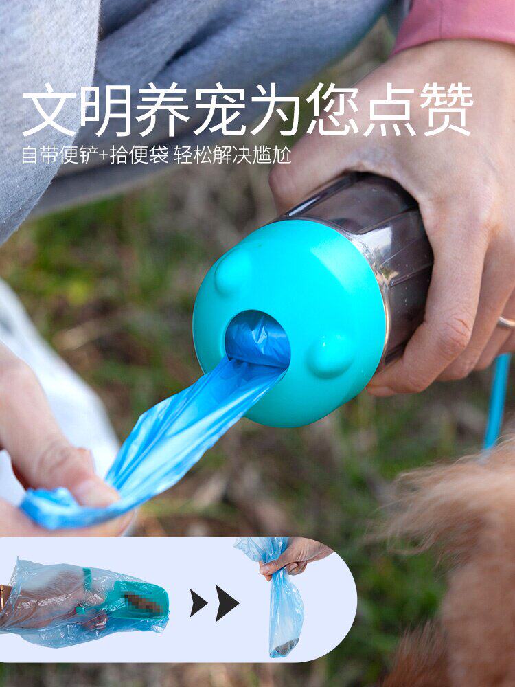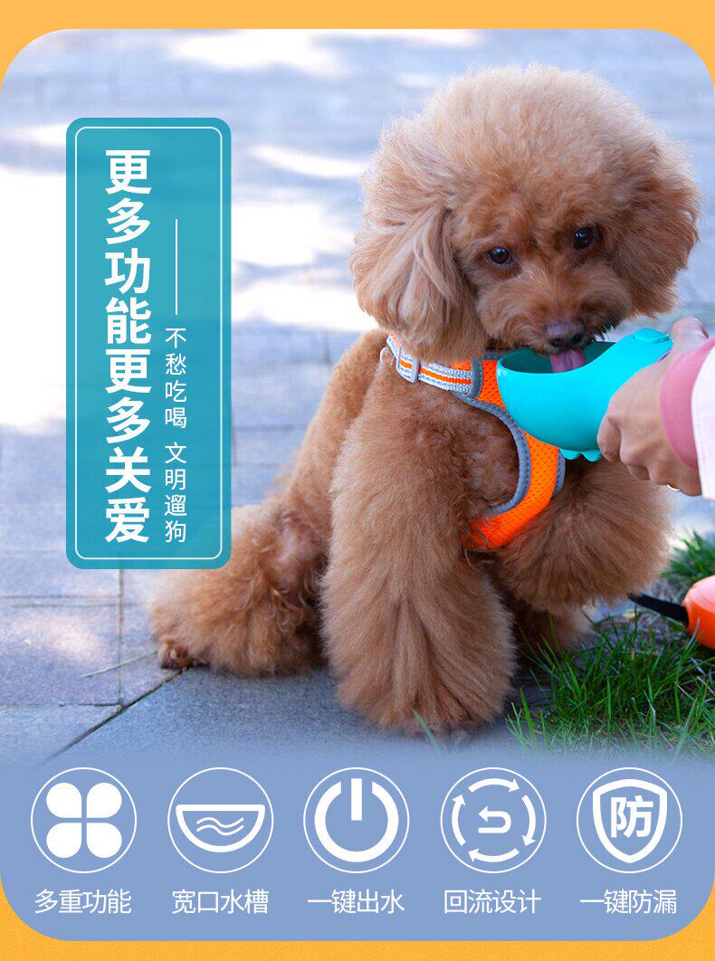 Собаки выходят на плюшевую плюшевую собаку с чашкой портативной воды, чтобы накормить домашних животных на открытом воздухе для питьевых нагревателей для путешествовавших воде.