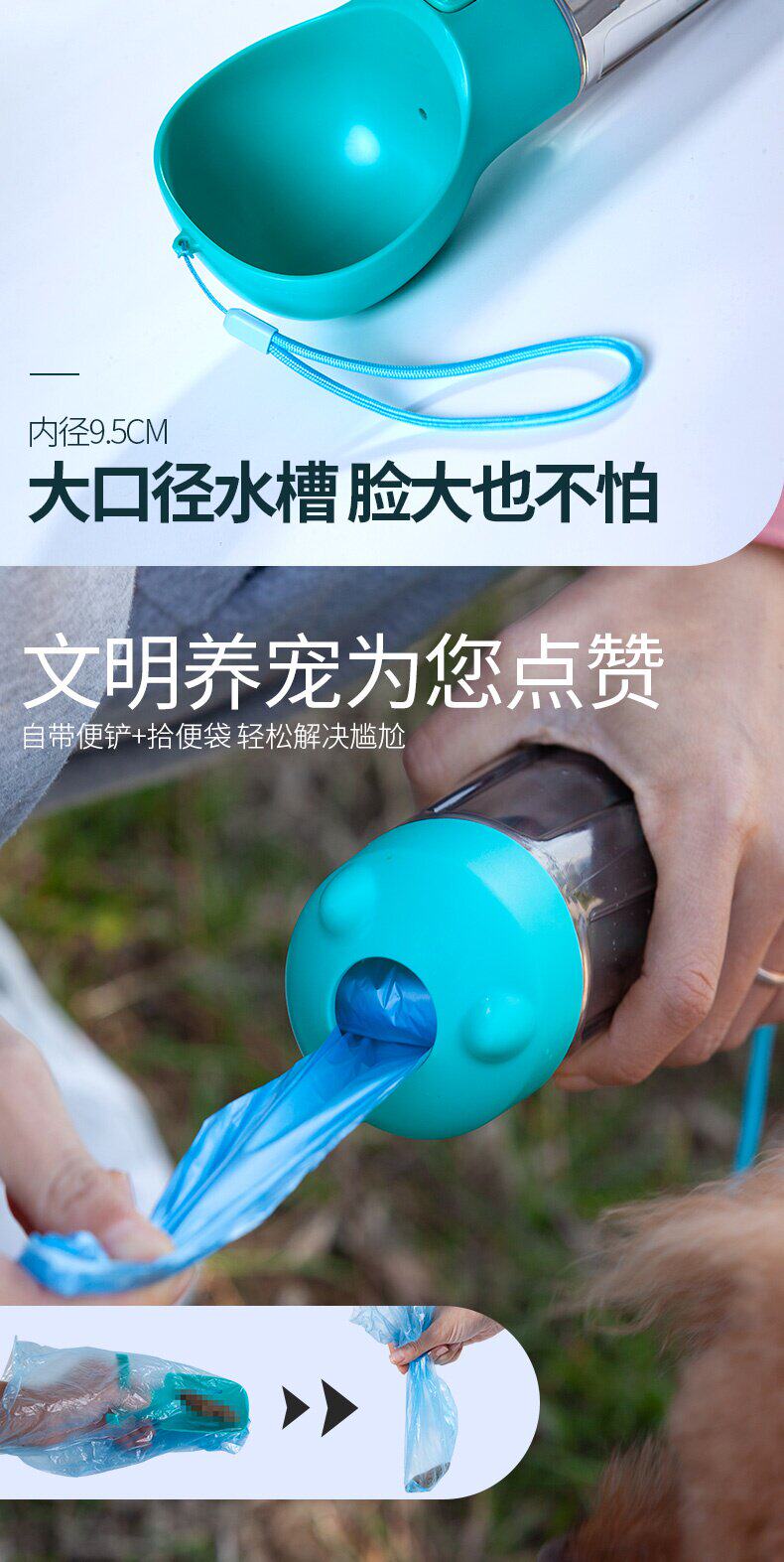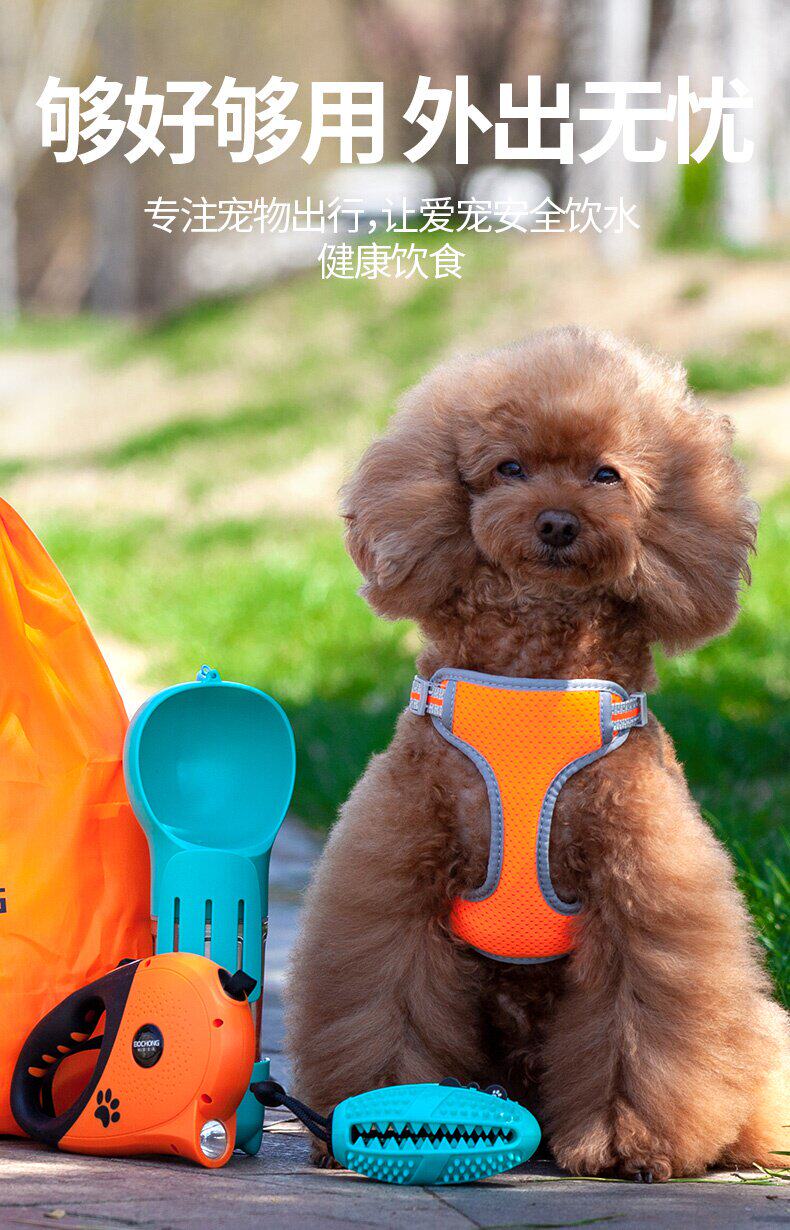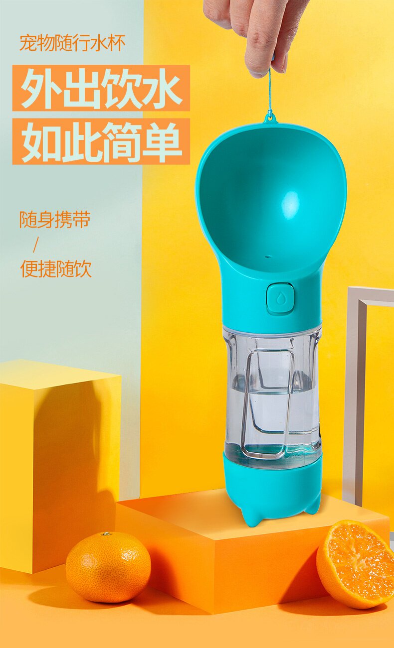 Собаки выходят на плюшевую плюшевую собаку с чашкой портативной воды, чтобы накормить домашних животных на открытом воздухе для питьевых нагревателей для путешествовавших воде.