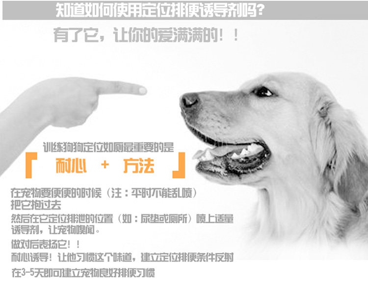 【Инструкции】:Распылите индуктор в фиксированном месте, побуждает кошек и собак исправляться в назначенном месте.Перед движениями кишечника для домашних животных распылите индуктор в фиксированном положении, пусть домашние животные пахнут и устанавливают условия дефекации с фиксированной точкой, чтобы отразить, и может установить хорошие привычки кишечника в течение 7-15 дней.