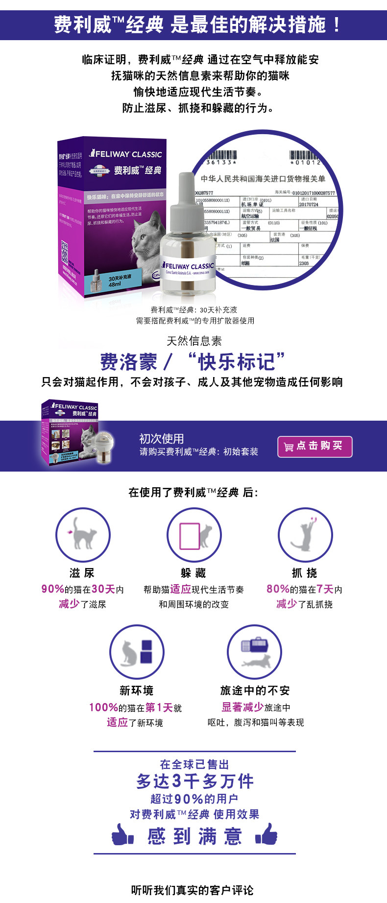 Французский Feliway Feli Welweed Fello Монгольский кот успокаивает эмоциональная антиуринная ароматерапевтическая добавка 48 мл
