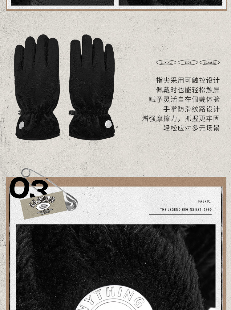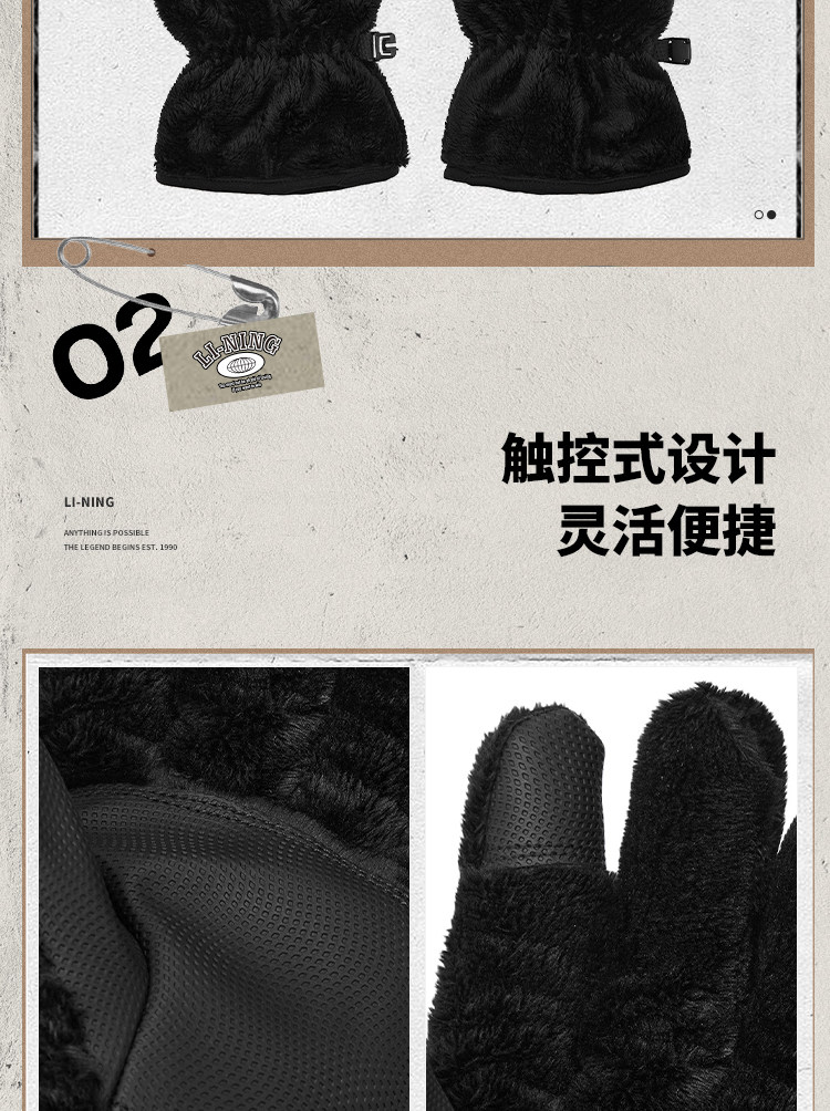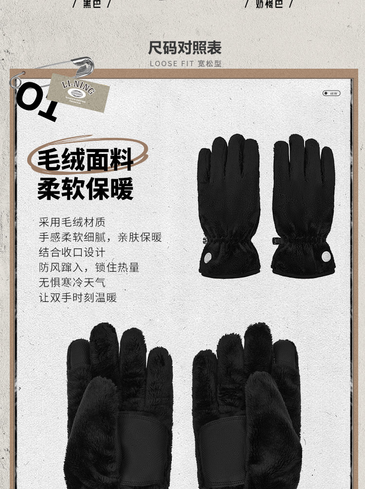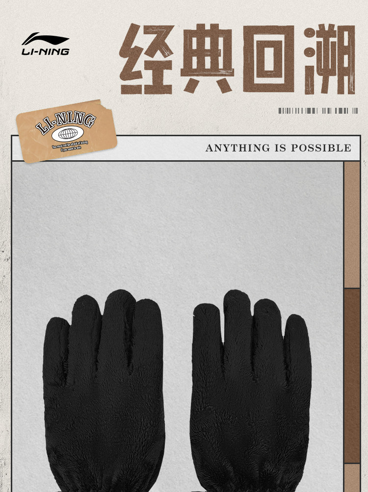 Li Ning, утепленные удерживающие тепло ветрозащитные износостойкие перчатки подходит для мужчин и женщин для отдыха
