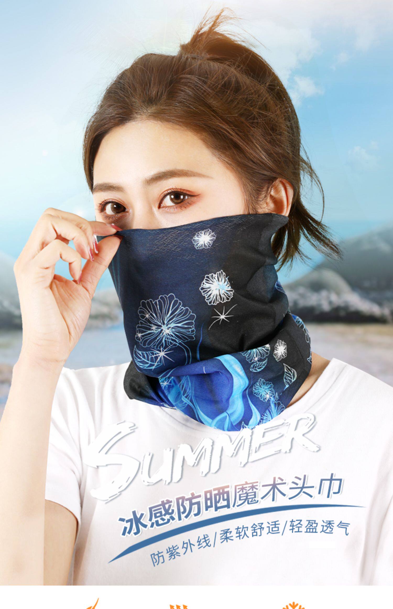 Летний шарф-платок, тонкая маска, шарф, защита от солнца, с защитой шеи