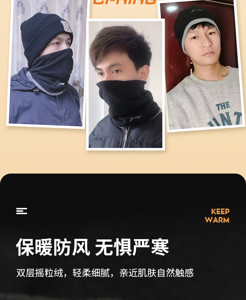 Li Ning, маска, мужской шарф-платок, удерживающий тепло дорожный универсальный утепленный шарф для скалозалания