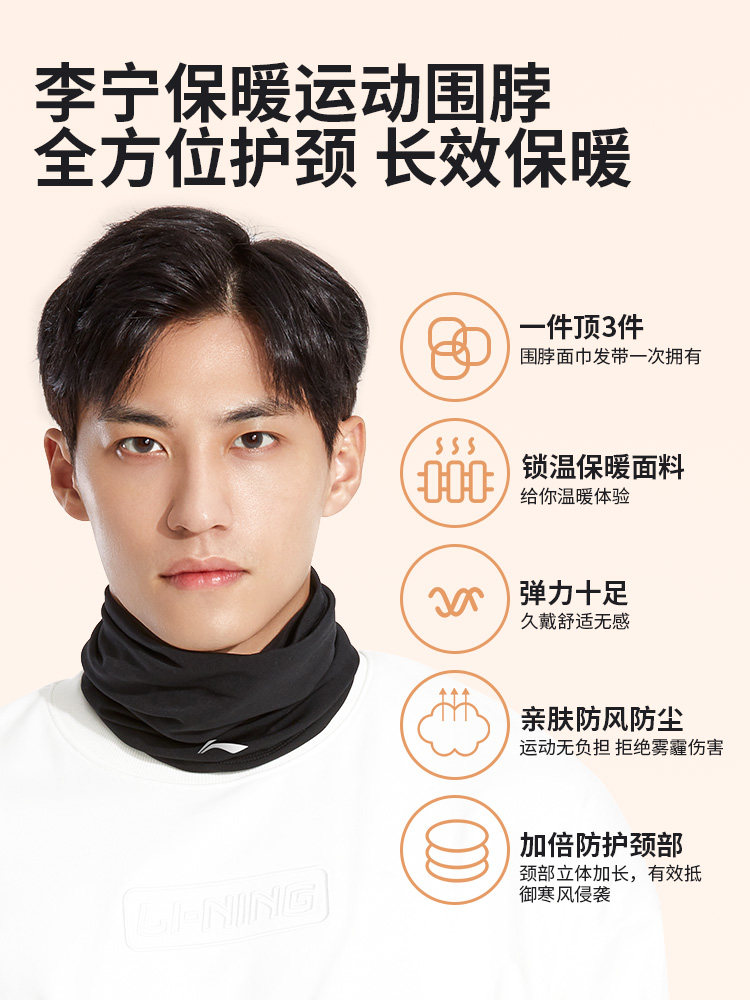 Li Ning, удерживающий тепло мужской шарф, шарф-платок, ветрозащитная зимняя альпинистская лыжная маска, мужской стиль, с защитой шеи