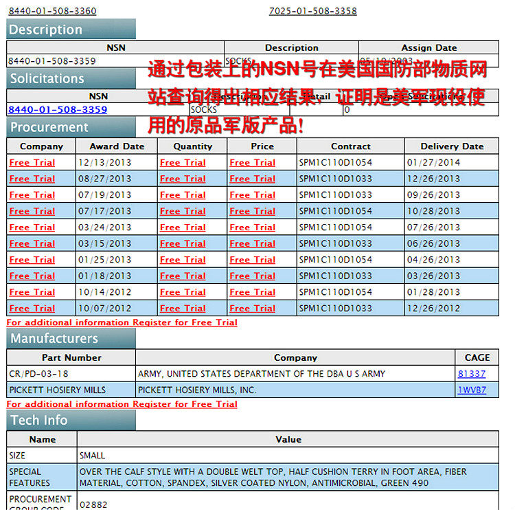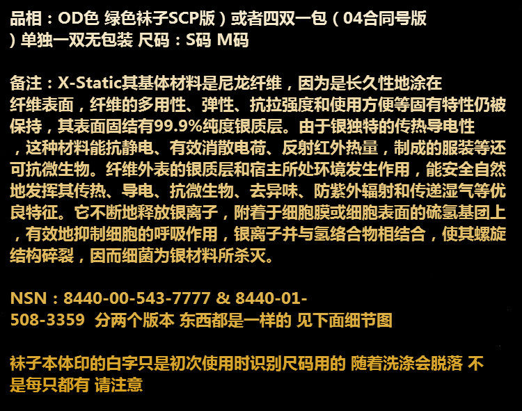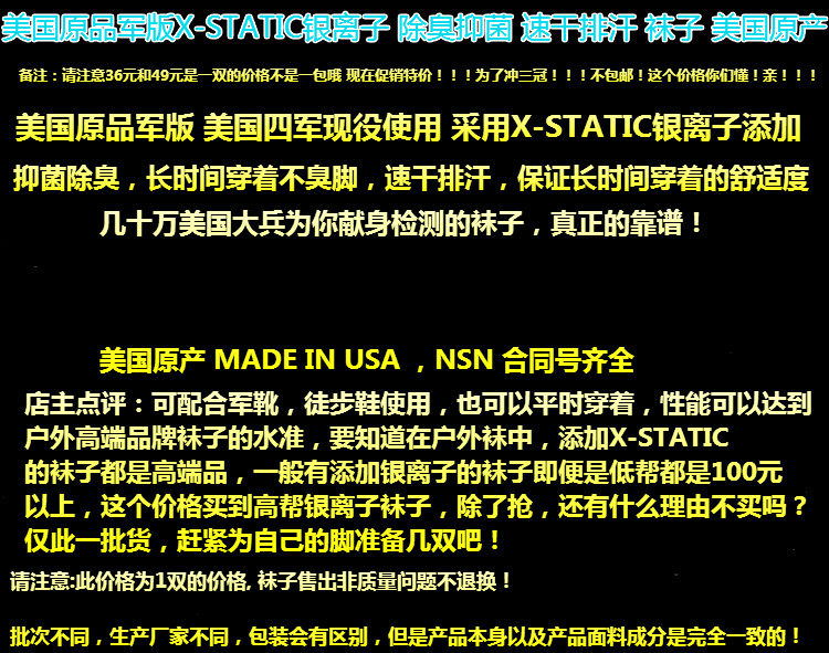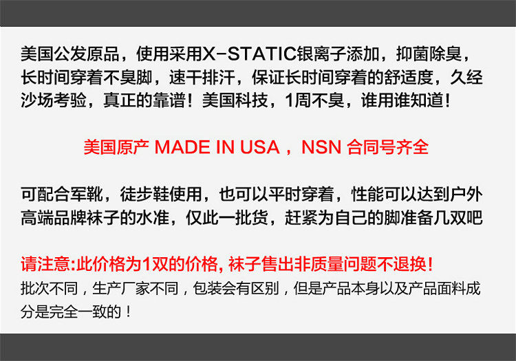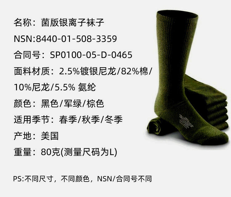 Оригинальная военная версия США ионо-ион-дезодоризации и антибактериальные и сухосубленные носки с потом на уроженцах Соединенных Штатов
