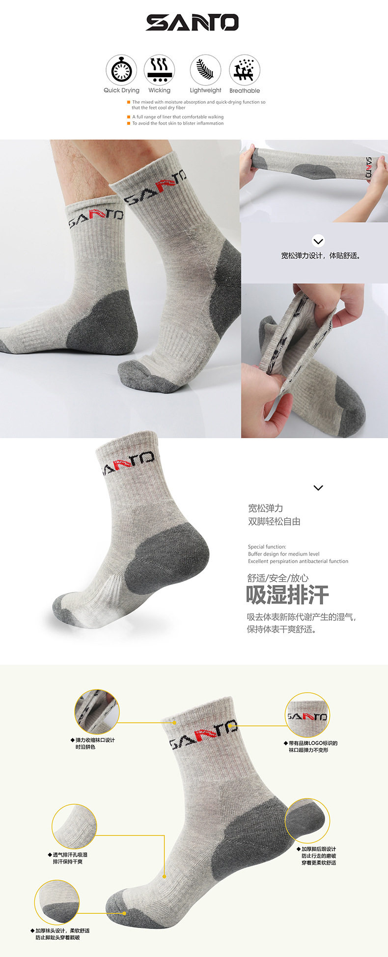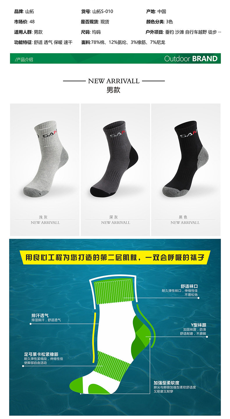 Альпинистские дорожные осенние демисезонные быстросохнущие удерживающие тепло носки подходит для пеших прогулок, средней длины